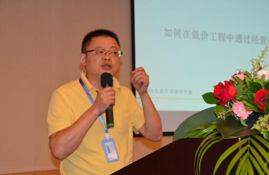 劉建國就“如何在低價工程中通過經營獲得利潤”這一話題和參會人員進行了分享。他表示,施工方案應從選材、設計方案、現場管理三個方面進行考慮。同時,要考慮施工方案整體化、工序合理化、材料配套系統化、施工節點模塊化、過程管控數字化等細節。同時,劉建國強調,施工階段過程中控制、交房階段變洽簽管控、結算階段制定回款倒退計劃、開票階段提前規劃回款時間等是使結算更加順暢的保障。