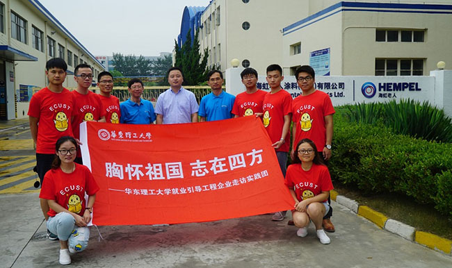 近日,由華東理工大學資源與環境工程學院和化工學院協作組成的聯合暑期社會實踐團隊,在資環學院黨委副書記饒志雄老師的帶領下訪問了海虹老人涂料(煙臺)有限公司。海虹老人北亞區QHSE負責人熱情接待了到訪師生。