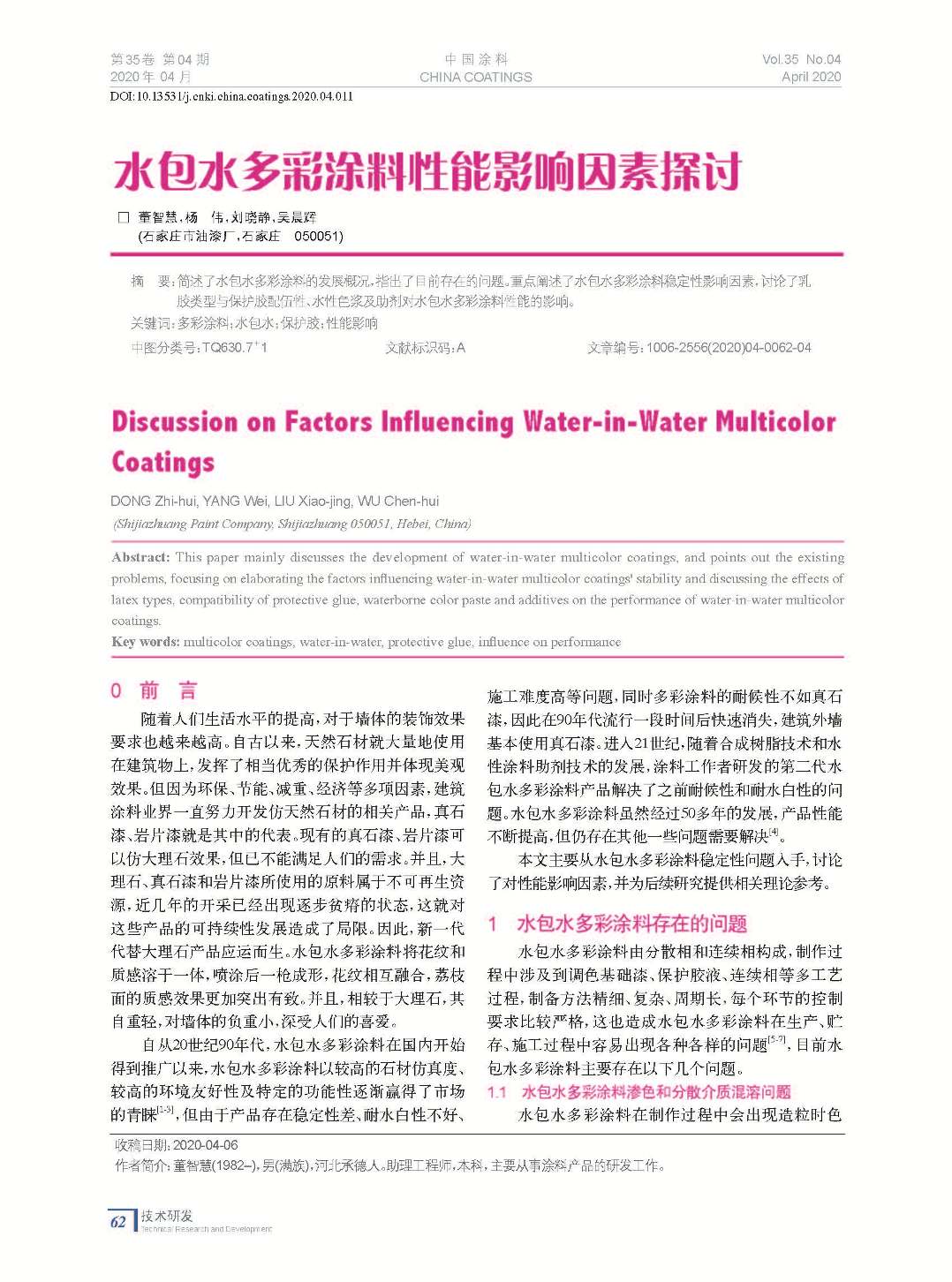 本文系作者@董智慧,楊 偉,劉曉靜,吳晨輝 授權中國涂料網發表,并經中國涂料網編輯,未經允許不得轉載,如需轉載請聯系chinacoatingnet@vip.163.com
