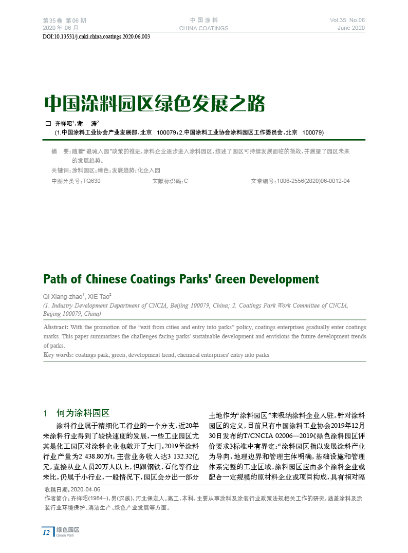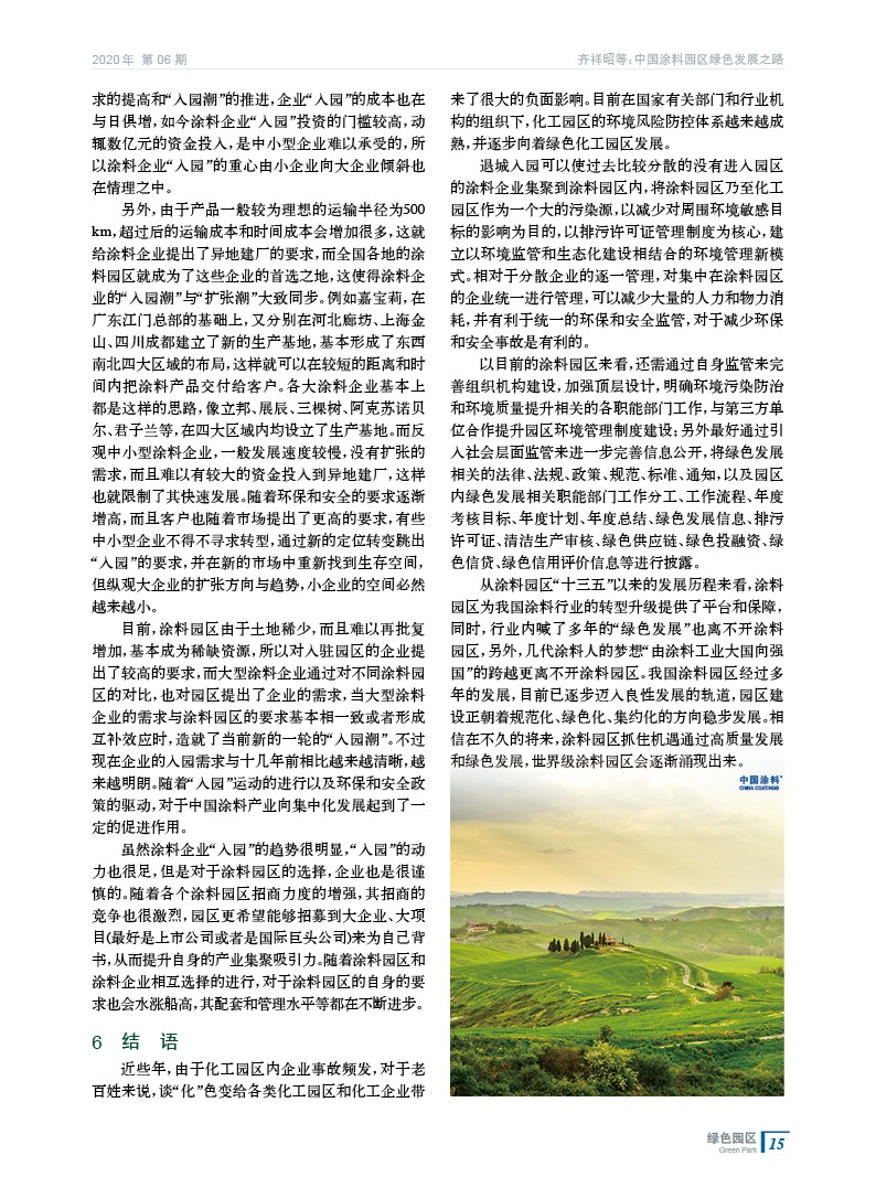 隨著“退城入園”政策的推進,涂料企業逐步進入涂料園區,綜述了園區可持續發展面臨的挑戰,并展望了園區未來的發展趨勢。