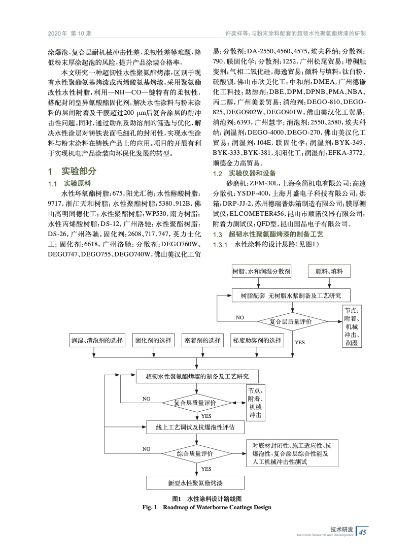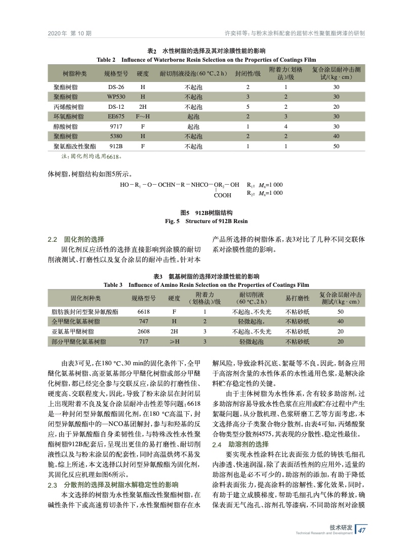與粉末涂料配套的超韌水性聚氨酯烤漆的研制