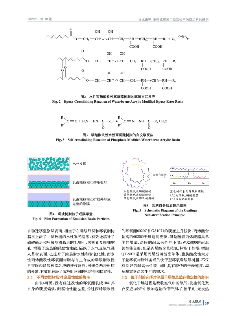 摘要:使用自制環氧改性丙烯酸樹脂并引入磷酸酯和不飽和雙鍵結構,得到含有多種活性官能團結構的環氧丙烯酸類樹脂,用其制備成一種單組分水性低溫快干防腐涂料,適用于圓盤式靜電涂裝工藝,應用于車輛減震器等表面防護涂裝,產品能夠圓盤式靜電涂裝,涂料可于60 ℃、20 min下低溫快速固化,不回黏,下線工件可堆壓;同時解決耐中性鹽霧測試后劃線處二次附著力差的問題。