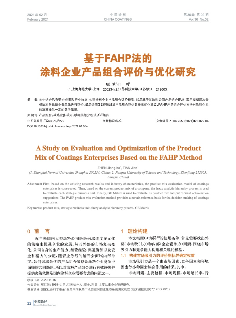 基于FAHP法的涂料企業產品組合評價與優化研究