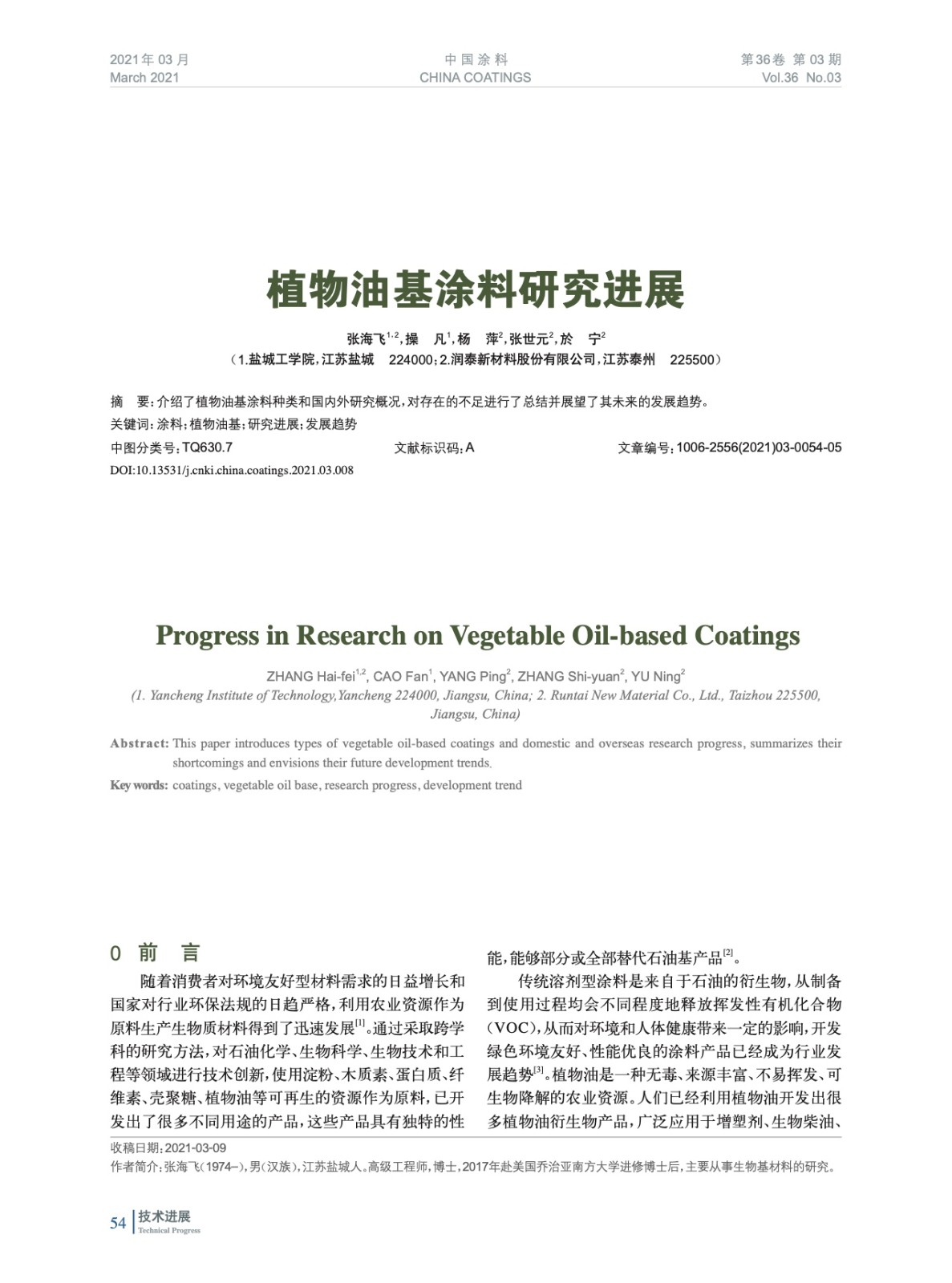 介紹了植物油基涂料種類和國內(nèi)外研究概況,對存在的不足進行了總結(jié)并展望了其未來的發(fā)展趨勢。