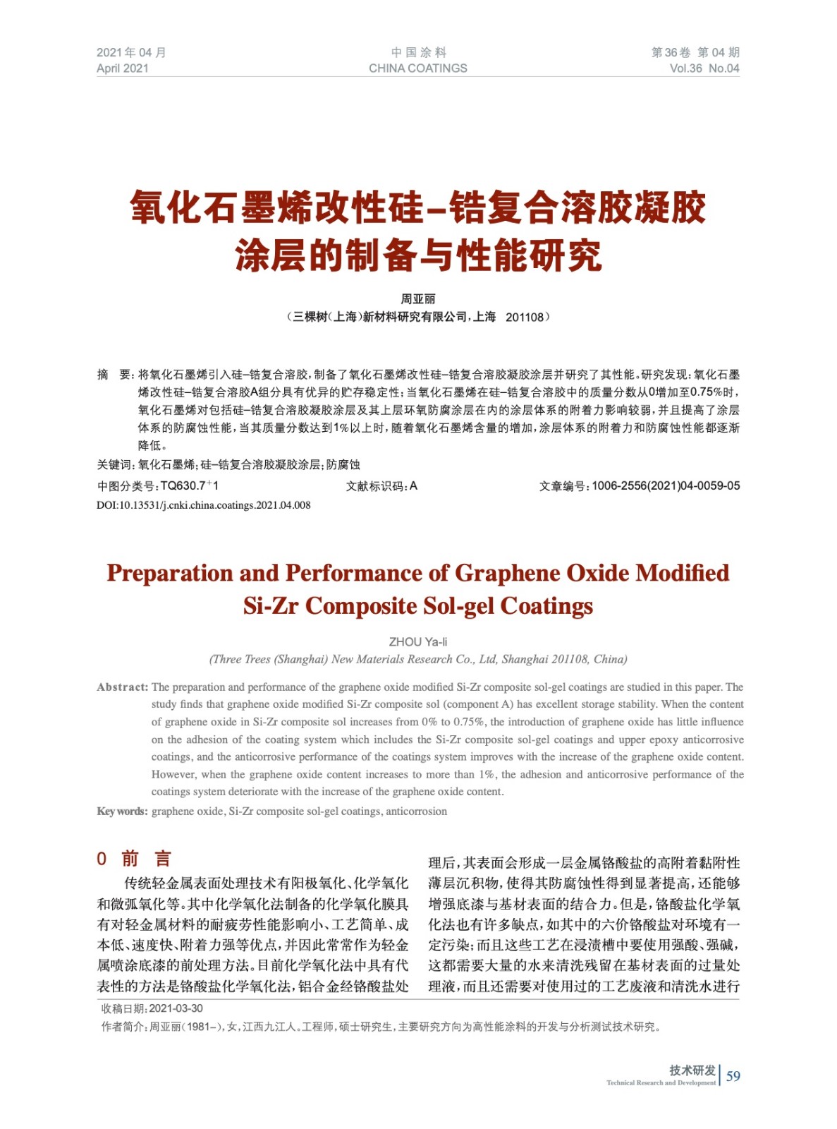 氧化石墨烯改性硅-鋯復(fù)合溶膠凝膠涂層的制備與性能研究