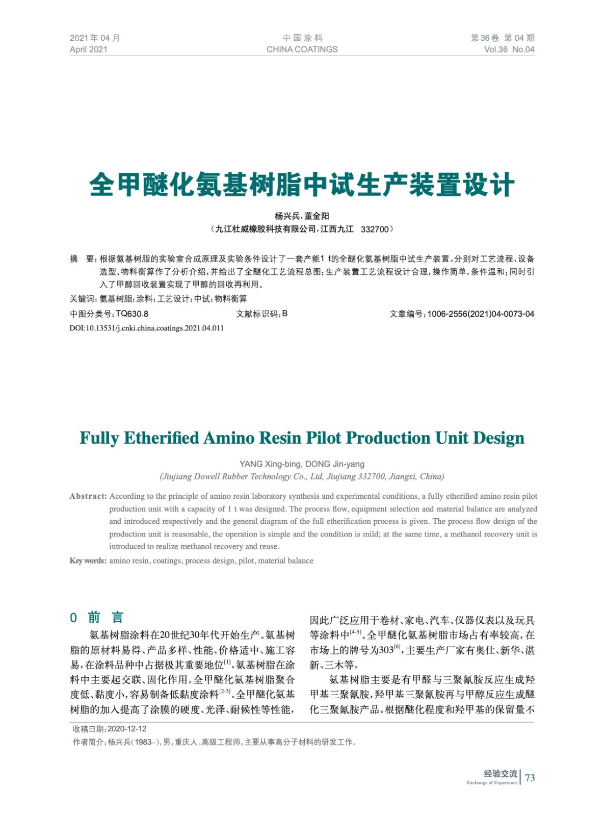 摘要:根據(jù)氨基樹脂的實(shí)驗(yàn)室合成原理及實(shí)驗(yàn)條件設(shè)計(jì)了一套產(chǎn)能1 t的全醚化氨基樹脂中試生產(chǎn)裝置。分別對工藝流程、設(shè)備選型、物料衡算作了分析介紹,并給出了全醚化工藝流程總圖;生產(chǎn)裝置工藝流程設(shè)計(jì)合理,操作簡單,條件溫和;同時(shí)引入了甲醇回收裝置實(shí)現(xiàn)了甲醇的回收再利用。