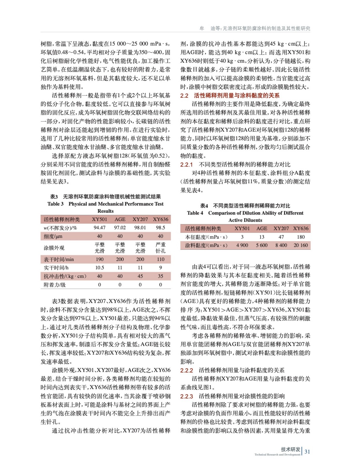 無溶劑環氧防腐涂料的制造及其性能研究