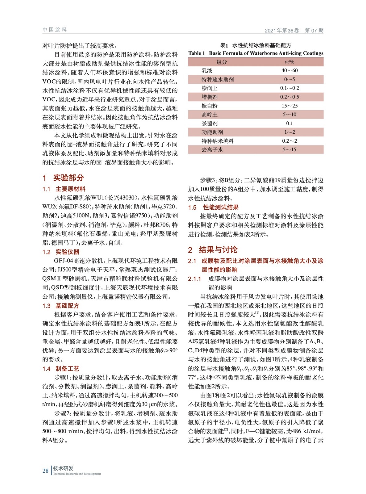 風(fēng)電葉片用水性抗結(jié)冰涂料的制備及性能影響因素探討