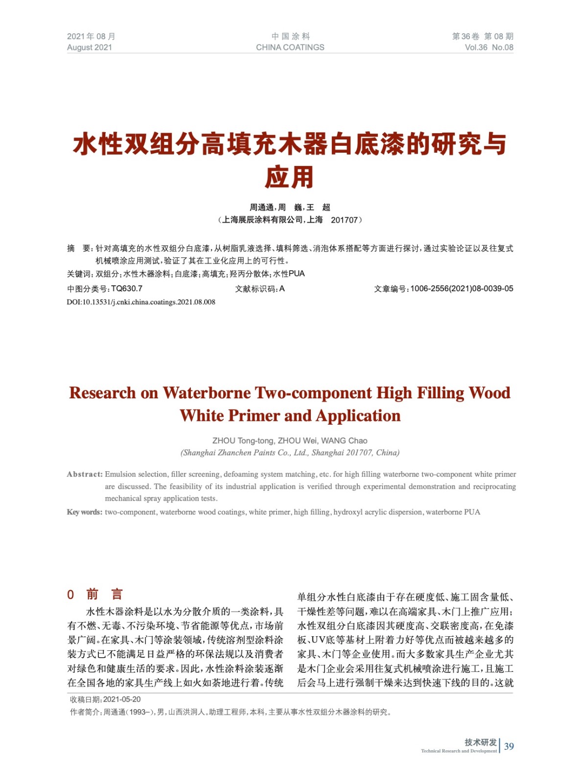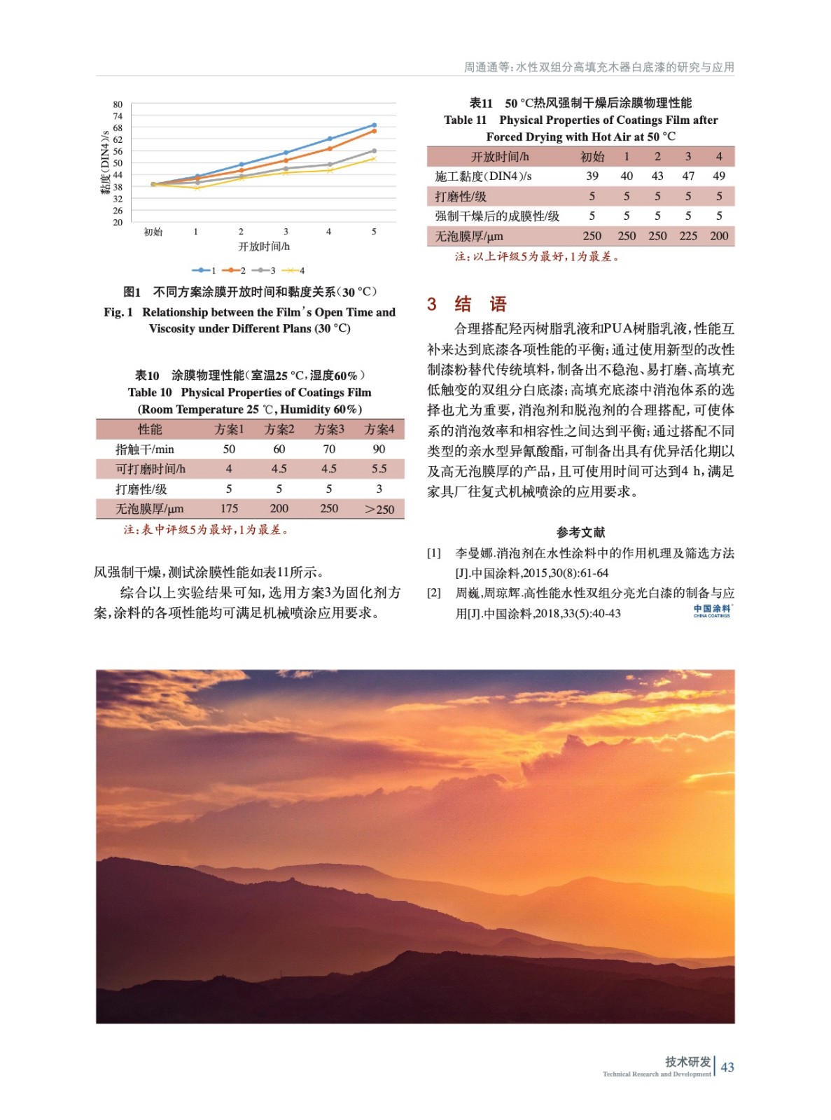 針對高填充的水性雙組分白底漆,從樹脂乳液選擇、填料篩選、消泡體系搭配等方面進行探討,通過實驗論證以及往復式機械噴涂應用測試,驗證了其在工業化應用上的可行性。