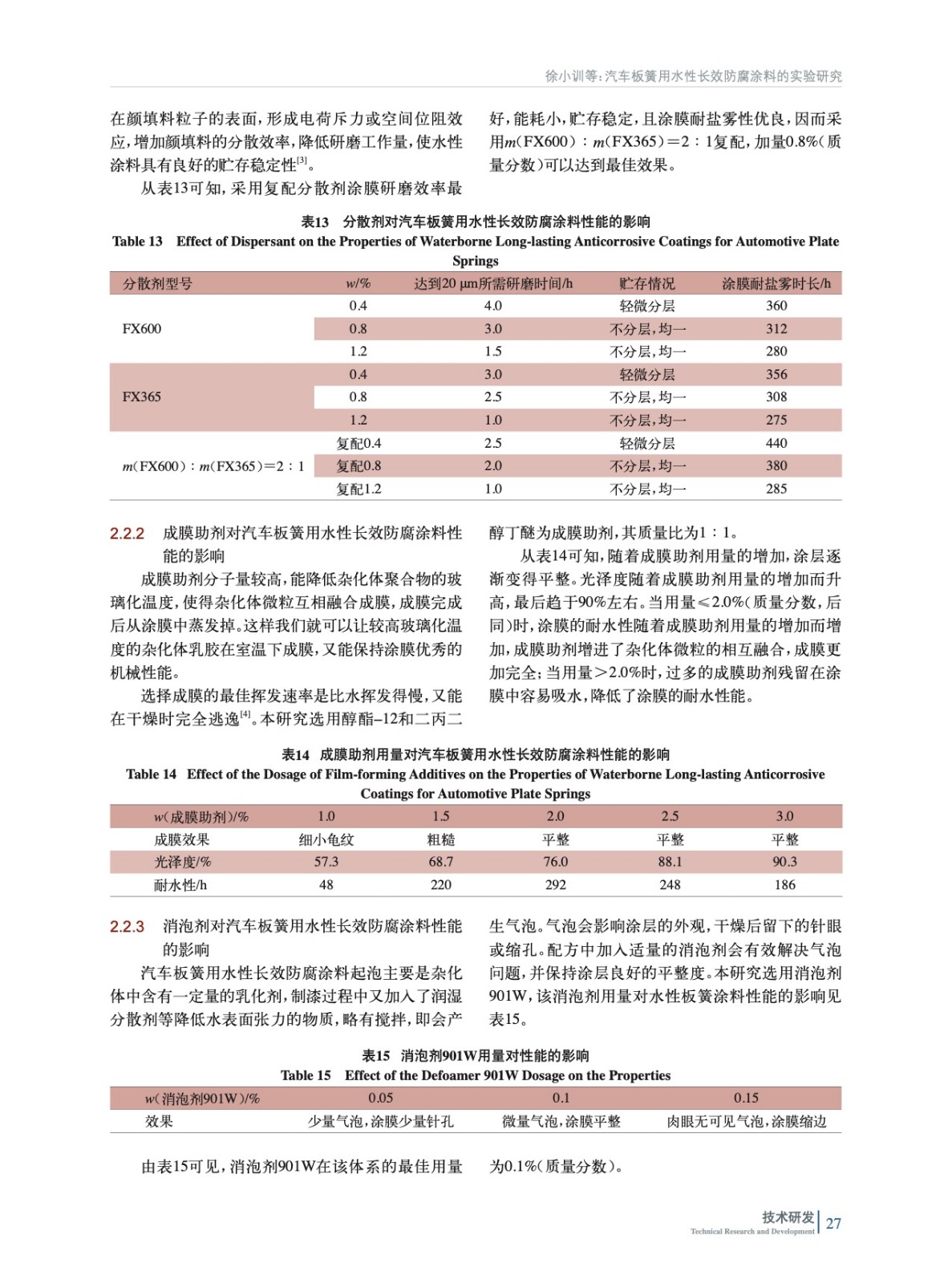 汽車板簧用水性長(zhǎng)效防腐涂料的實(shí)驗(yàn)研究