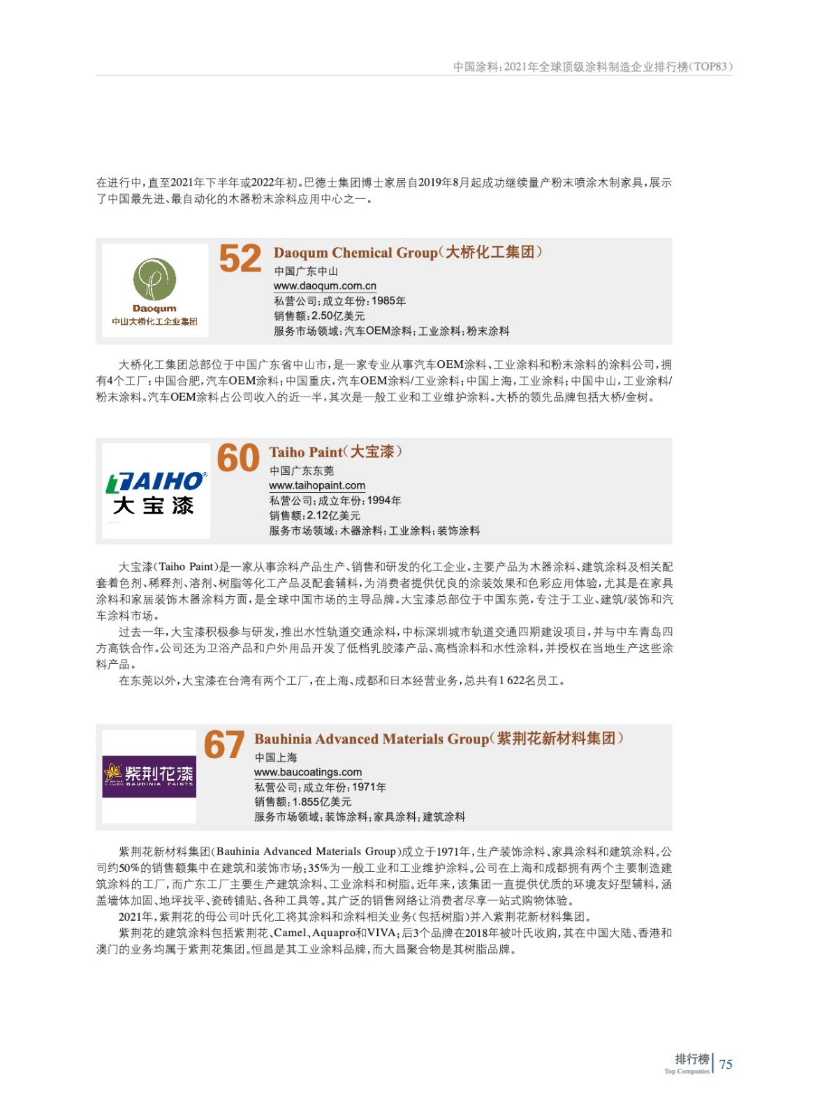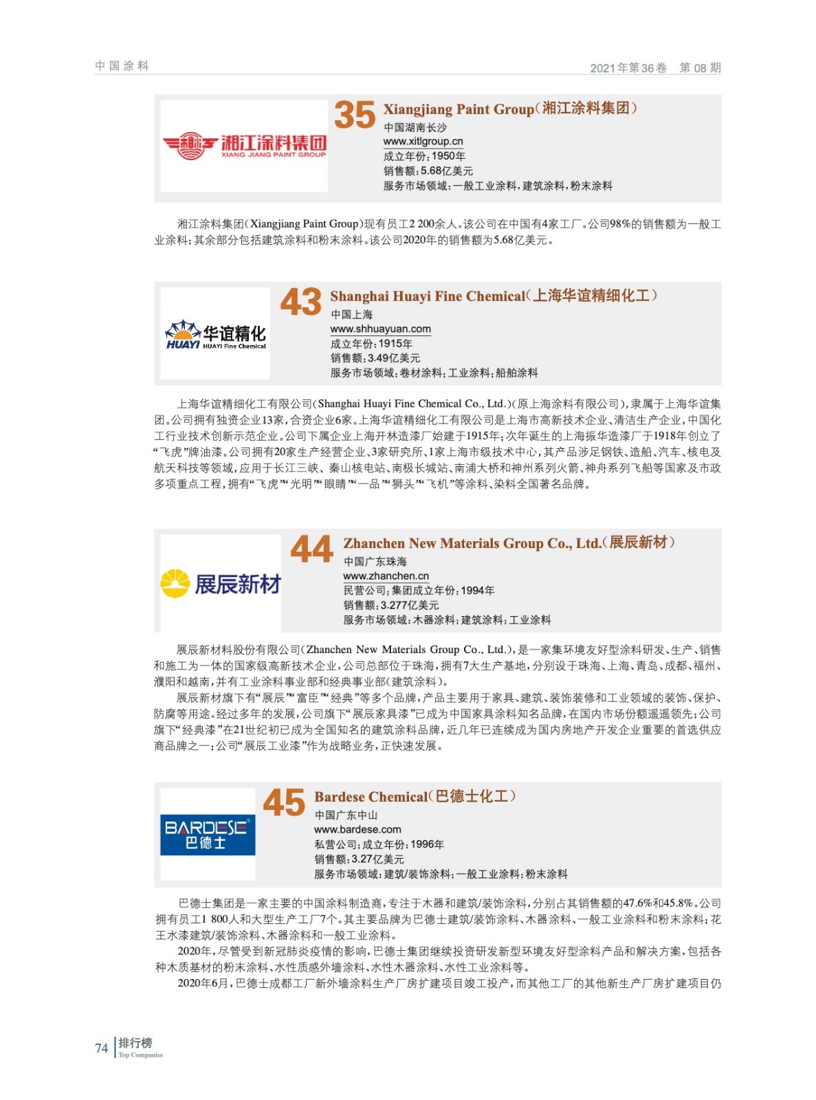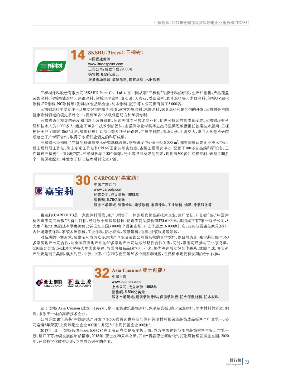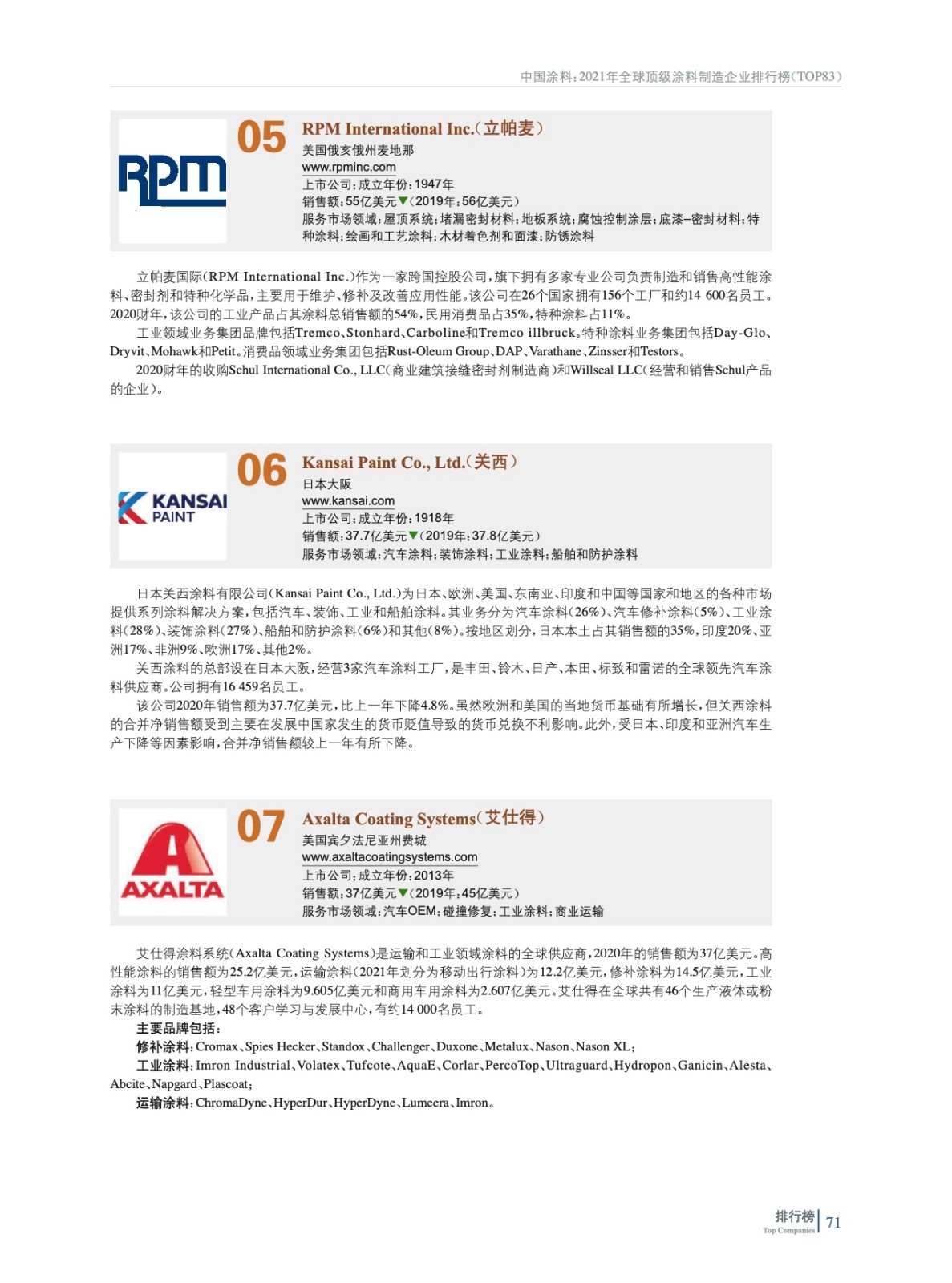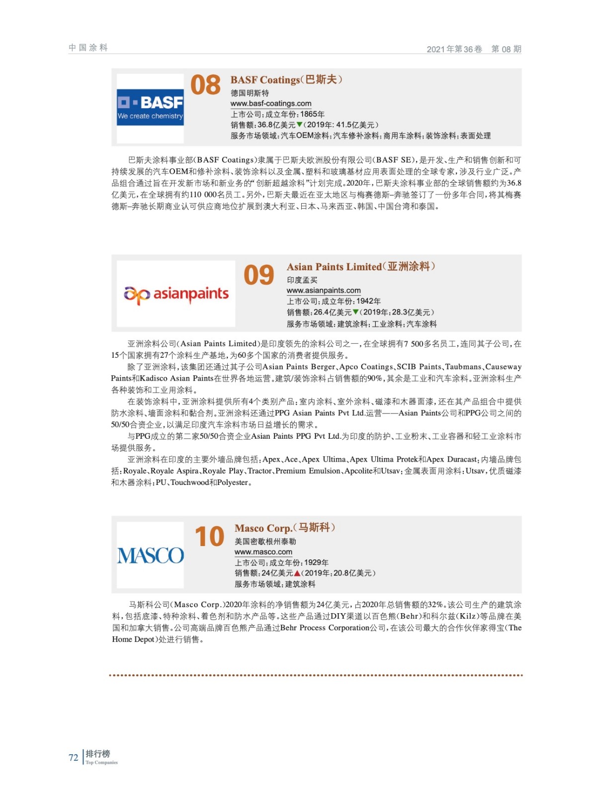 2021年全球頂級涂料制造企業排行榜(TOP 83)