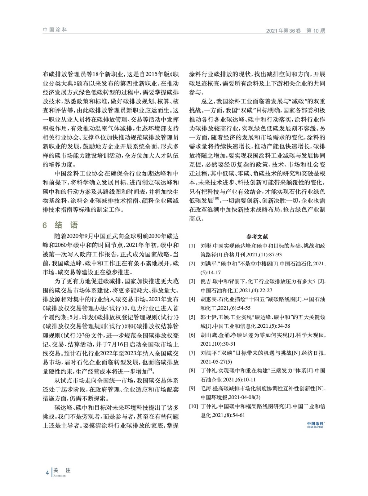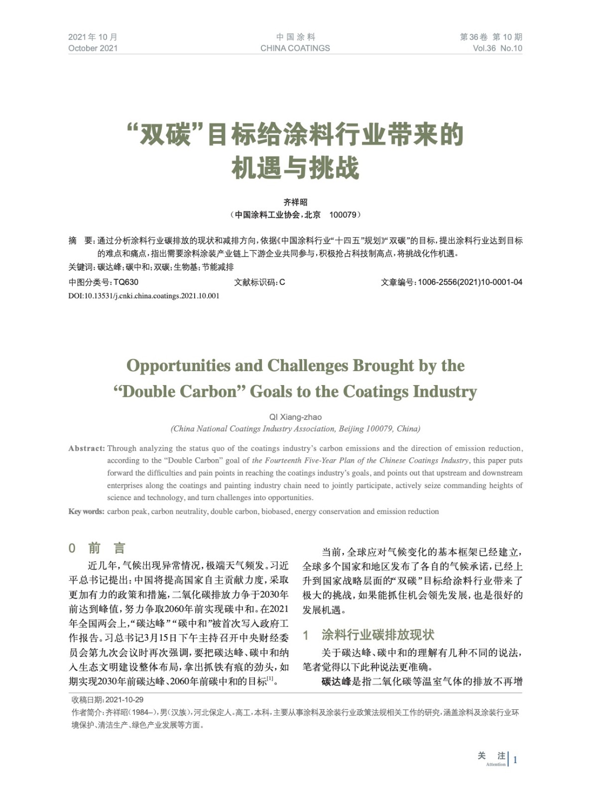 通過分析涂料行業碳排放的現狀和減排方向,依據《中國涂料行業“十四五”規劃》“雙碳”的目標,提出涂料行業達到目標的難點和痛點,指出需要涂料涂裝產業鏈上下游企業共同參與,積極搶占科技制高點,將挑戰化作機遇。