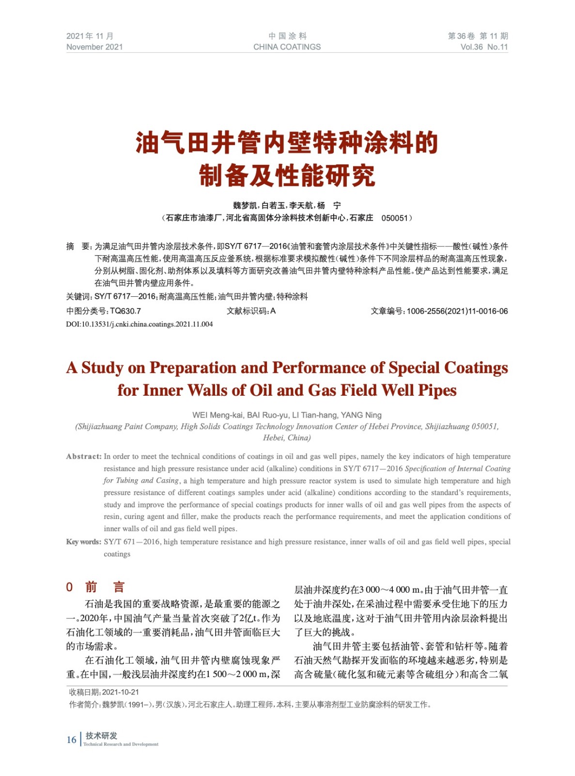 本文系作者@魏夢凱,白若玉,李天航,楊 寧 授權中國涂料網發表,并經中國涂料網編輯,未經允許不得轉載,如需轉載請聯系chinacoatingnet@vip.163.com