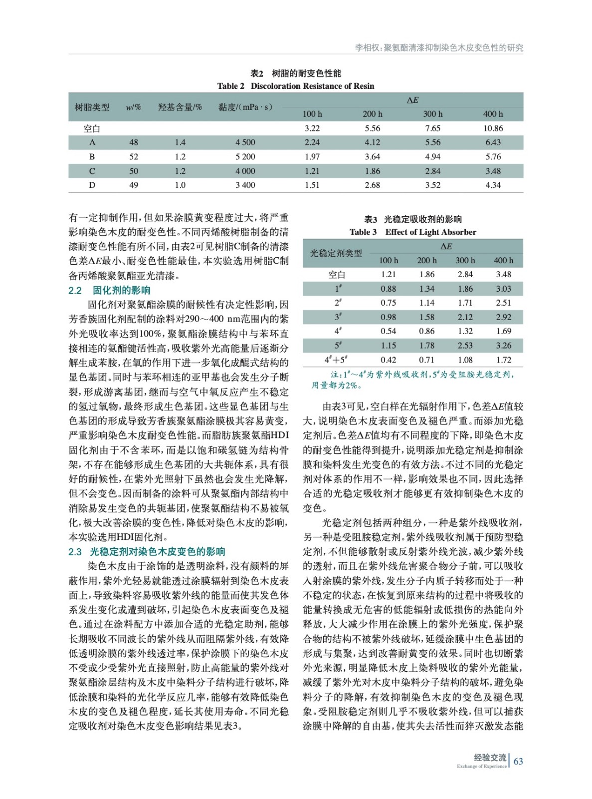 聚氨酯清漆抑制染色木皮變色性的研究