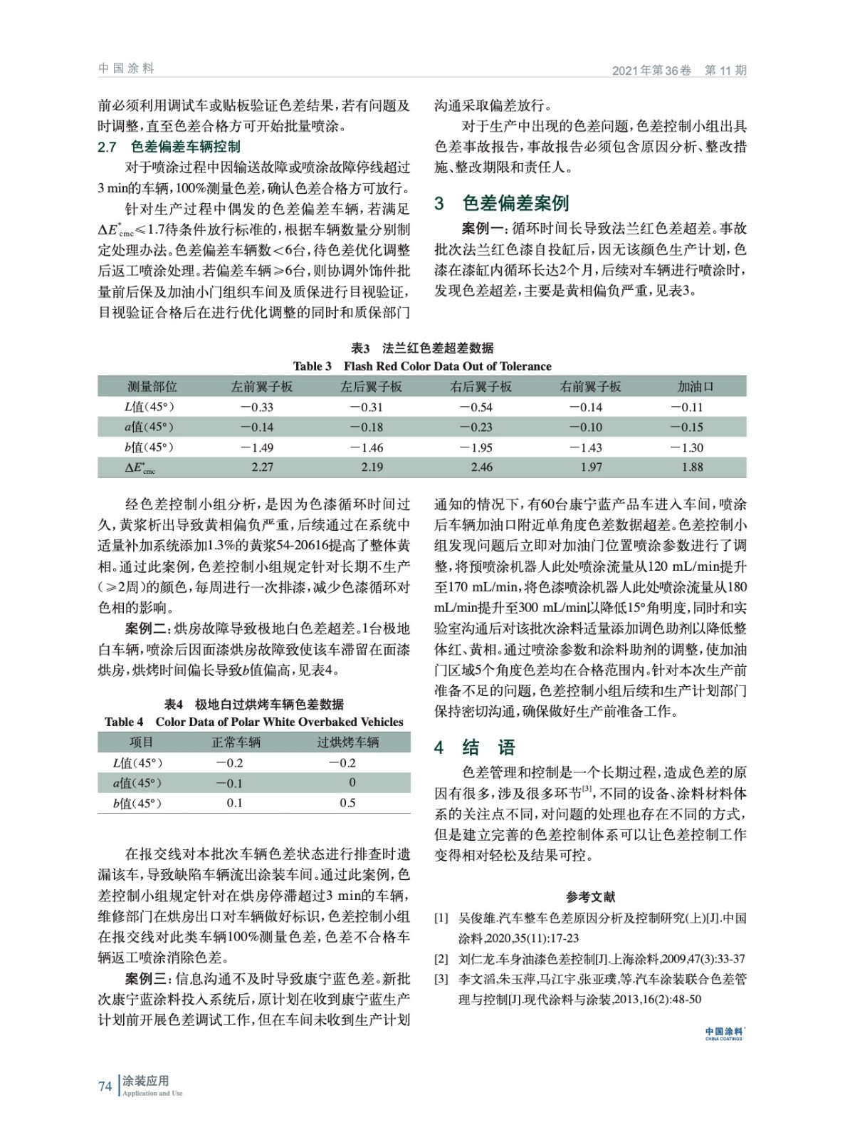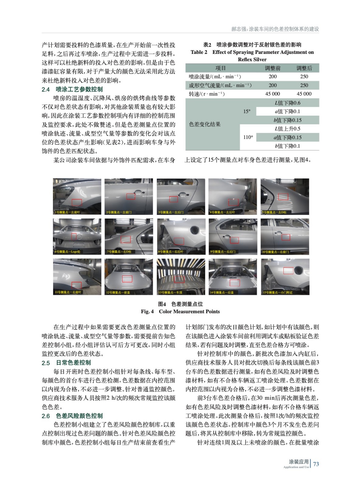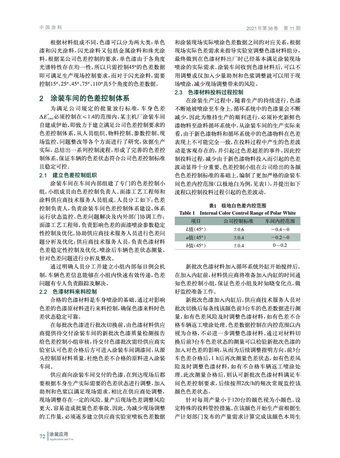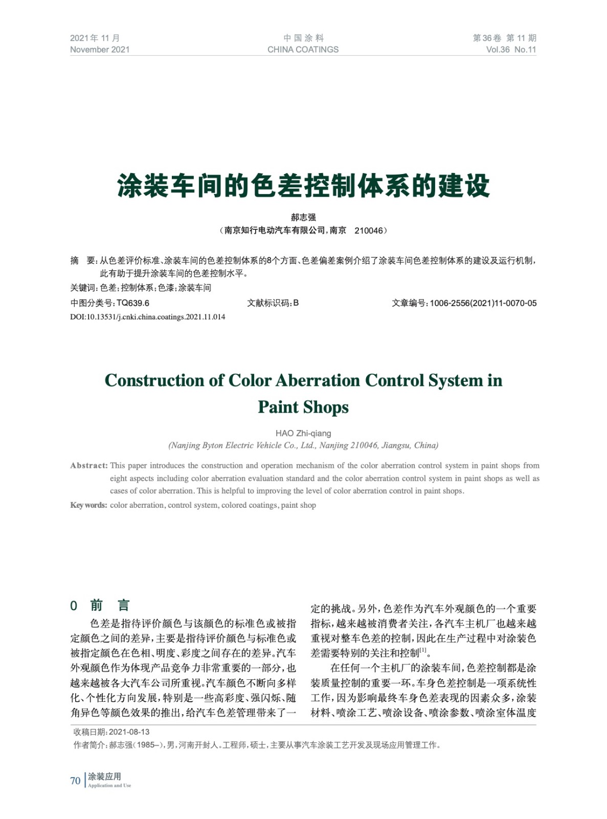摘要:從色差評(píng)價(jià)標(biāo)準(zhǔn)、涂裝車間的色差控制體系的8個(gè)方面、色差偏差案例介紹了涂裝車間色差控制體系的建設(shè)及運(yùn)行機(jī)制,此有助于提升涂裝車間的色差控制水平。