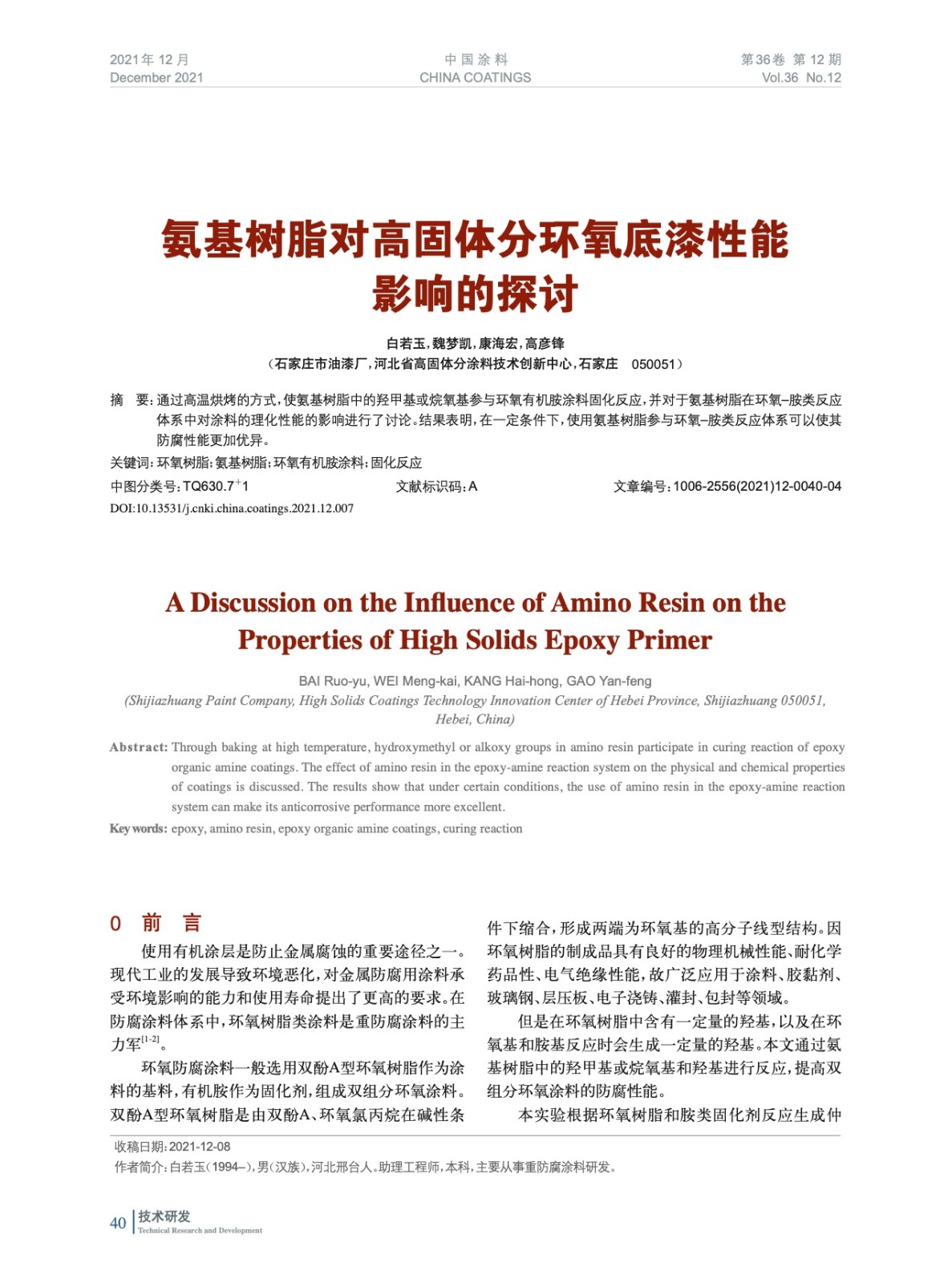 本文系作者@白若玉,魏夢凱,康海宏,高彥鋒 授權中國涂料網發表,并經中國涂料網編輯,未經允許不得轉載,如需轉載請聯系chinacoatingnet@vip.163.com