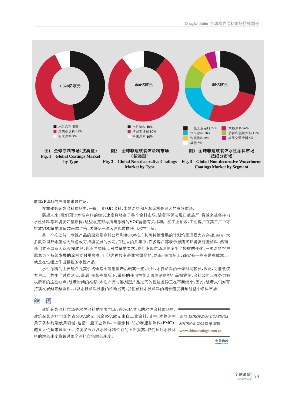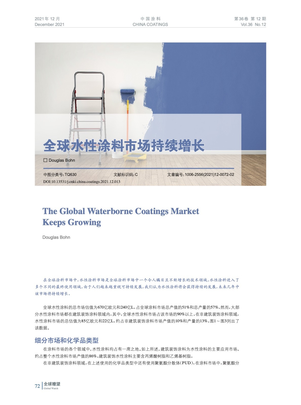 編者按:在全球涂料市場中,水性涂料市場是全球涂料市場中一個令人矚目且不斷增長的技術領域。水性涂料進入了多個不同的最終使用領域。由于人們越來越重視可持續發展,我們認為水性涂料將會獲得持續的發展,未來幾年中該市場將持續增長。
