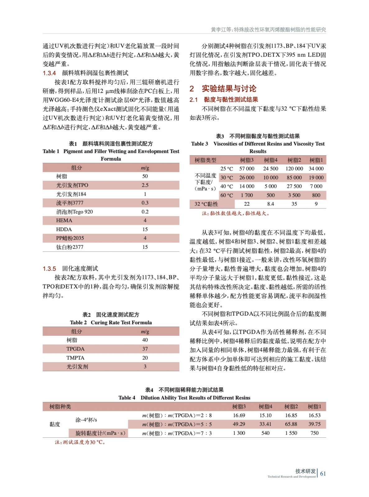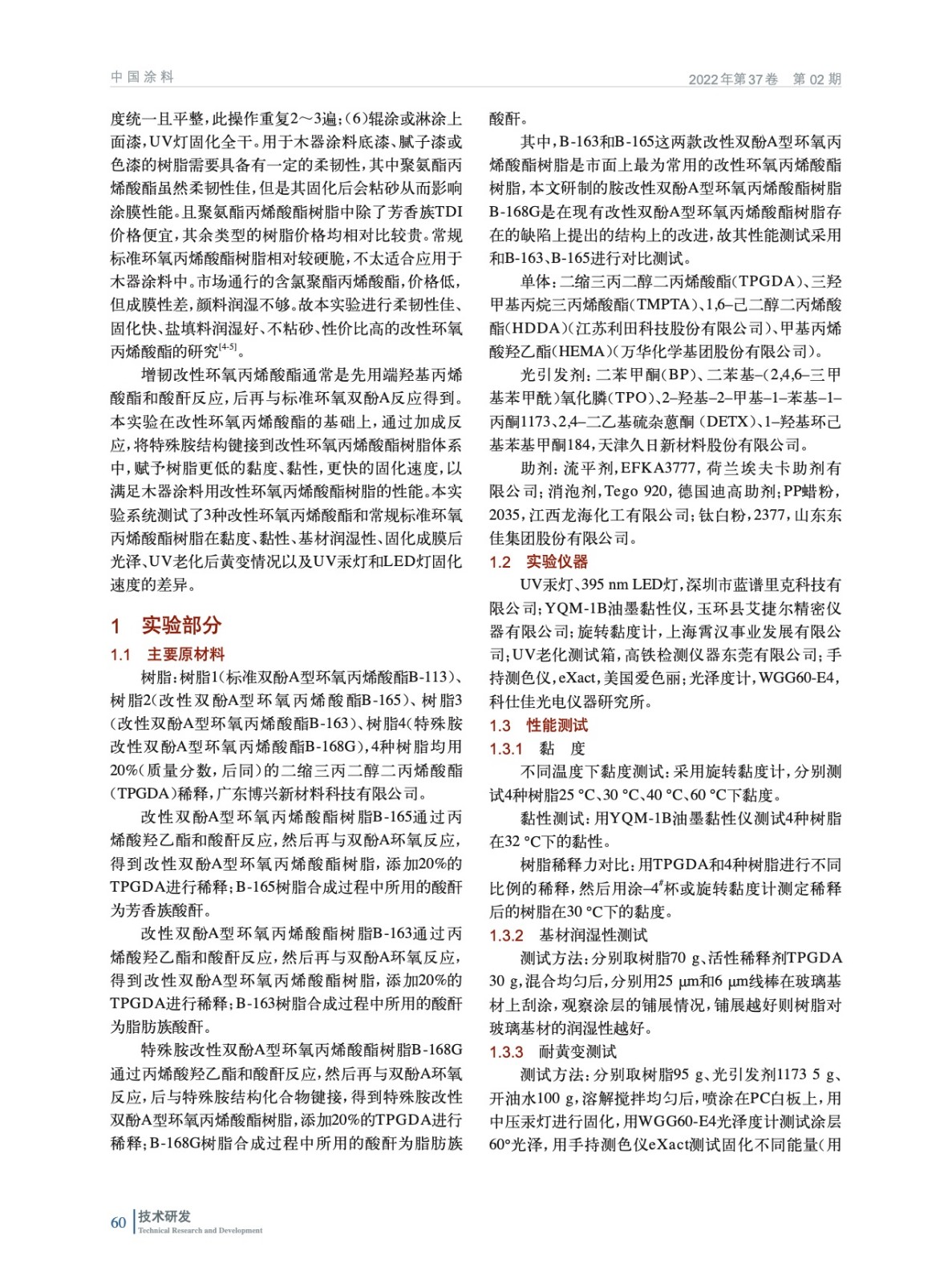特殊胺改性環(huán)氧丙烯酸酯樹脂的性能研究