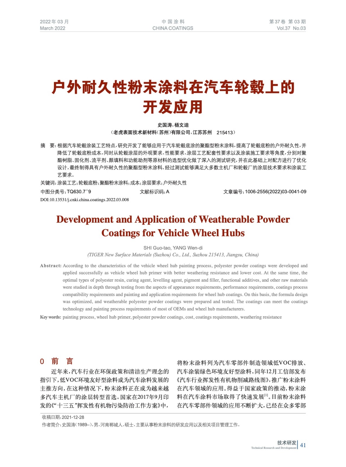 戶外耐久性粉末涂料在汽車輪轂上的開發應用