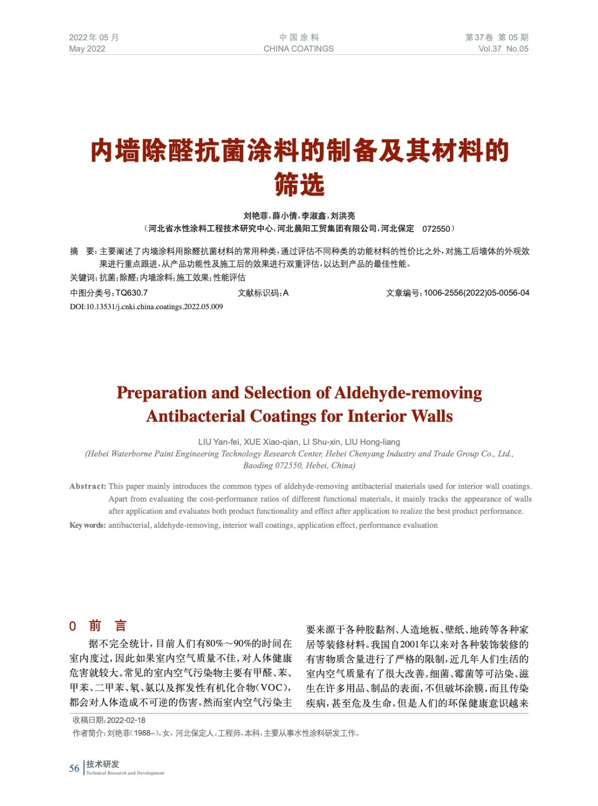 主要闡述了內墻涂料用除醛抗菌材料的常用種類,通過評估不同種類的功能材料的性價比之外,對施工后墻體的外觀效果進行重點跟進,從產品功能性及施工后的效果進行雙重評估,以達到產品的最佳性能。