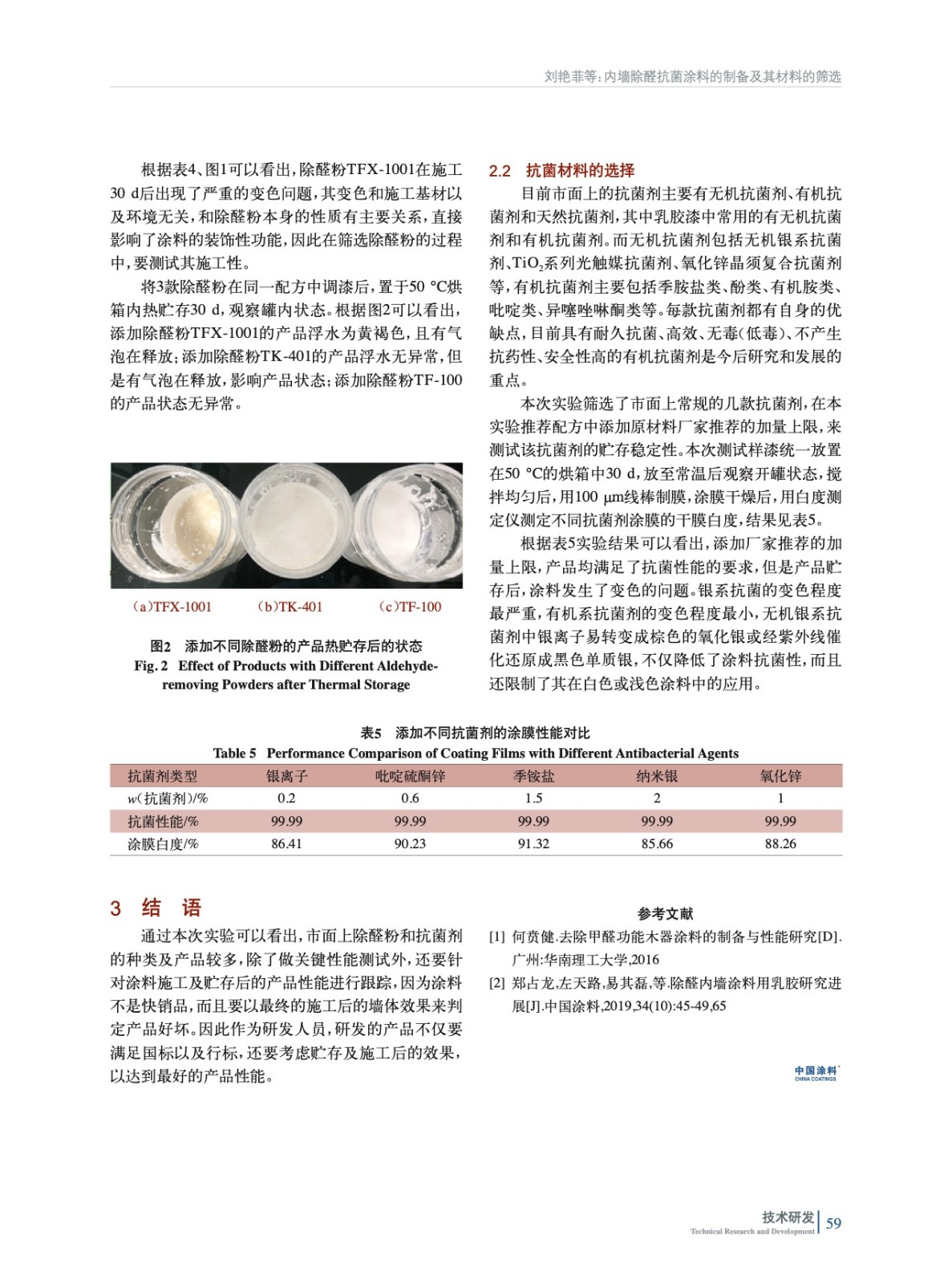 內墻除醛抗菌涂料的制備及其材料的篩選