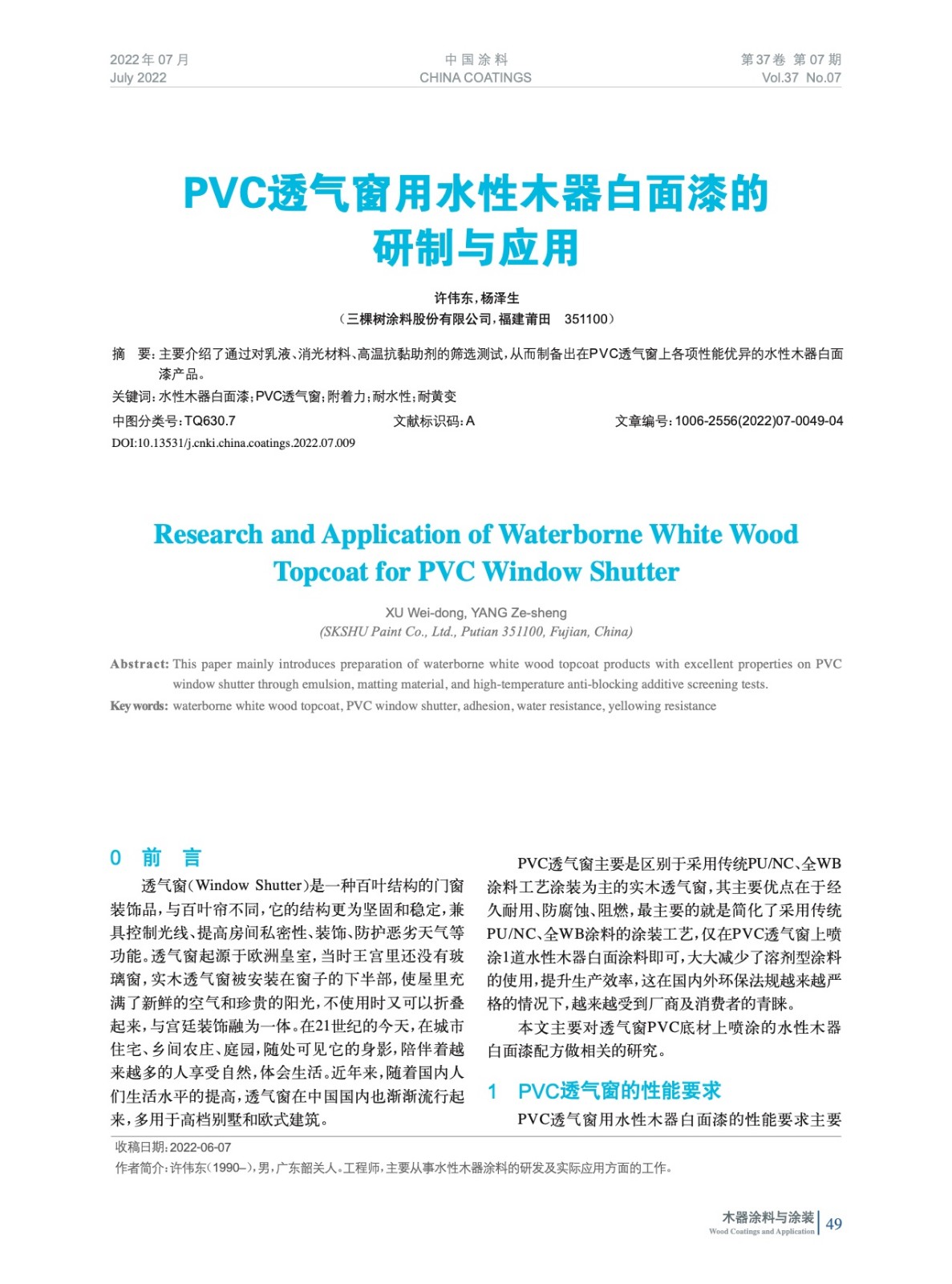 PVC透氣窗用水性木器白面漆的研制與應用