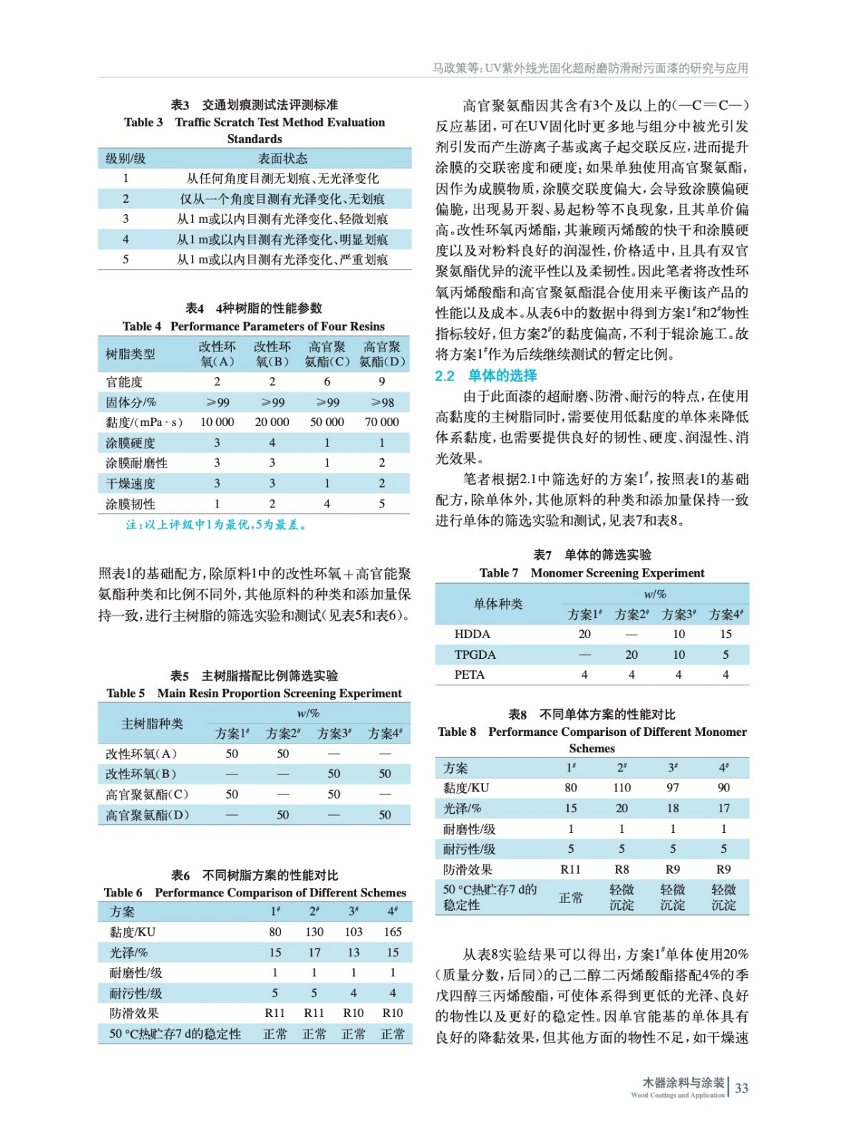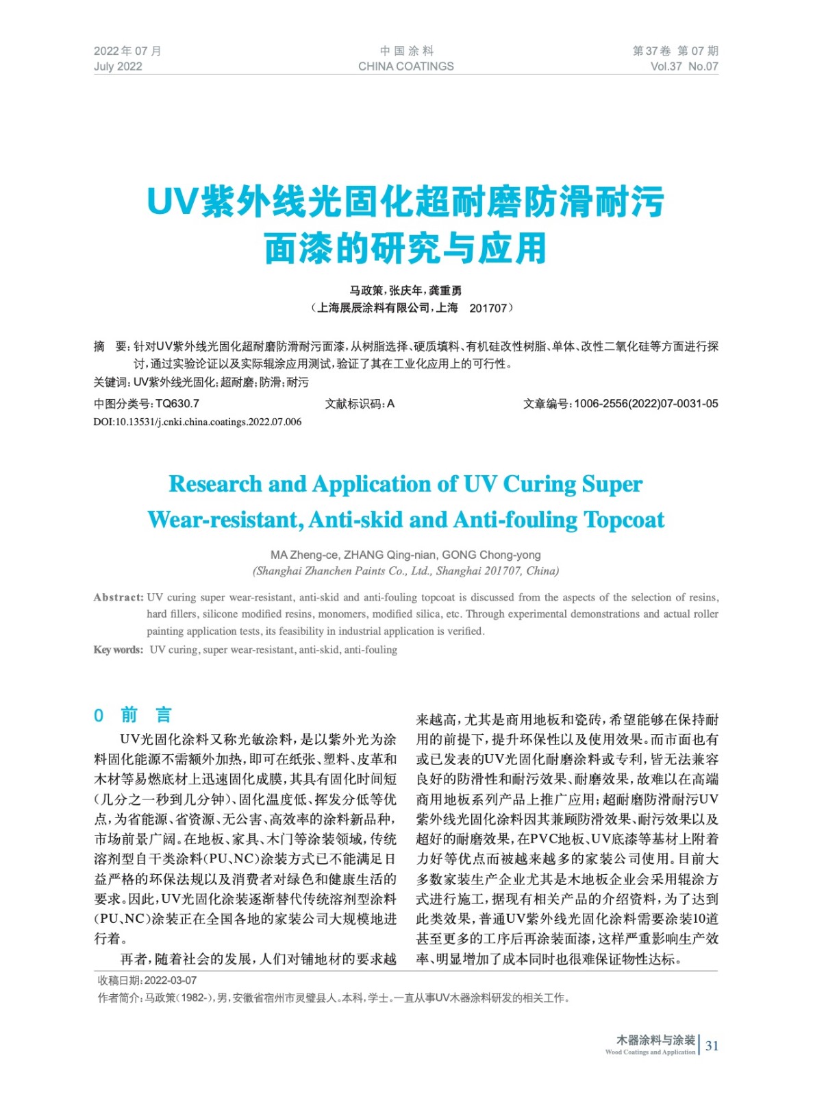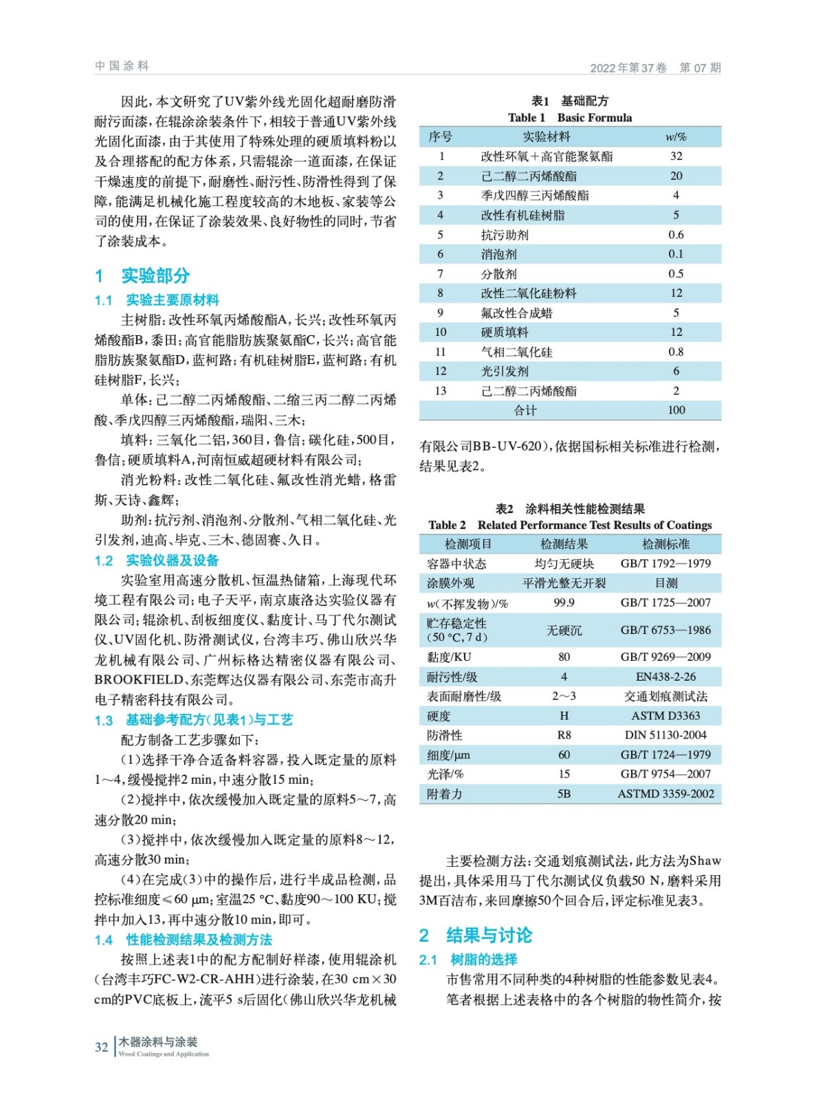 針對UV紫外線光固化超耐磨防滑耐污面漆,從樹脂選擇、硬質填料、有機硅改性樹脂、單體、改性二氧化硅等方面進行探討,通過實驗論證以及實際輥涂應用測試,驗證了其在工業化應用上的可行性。