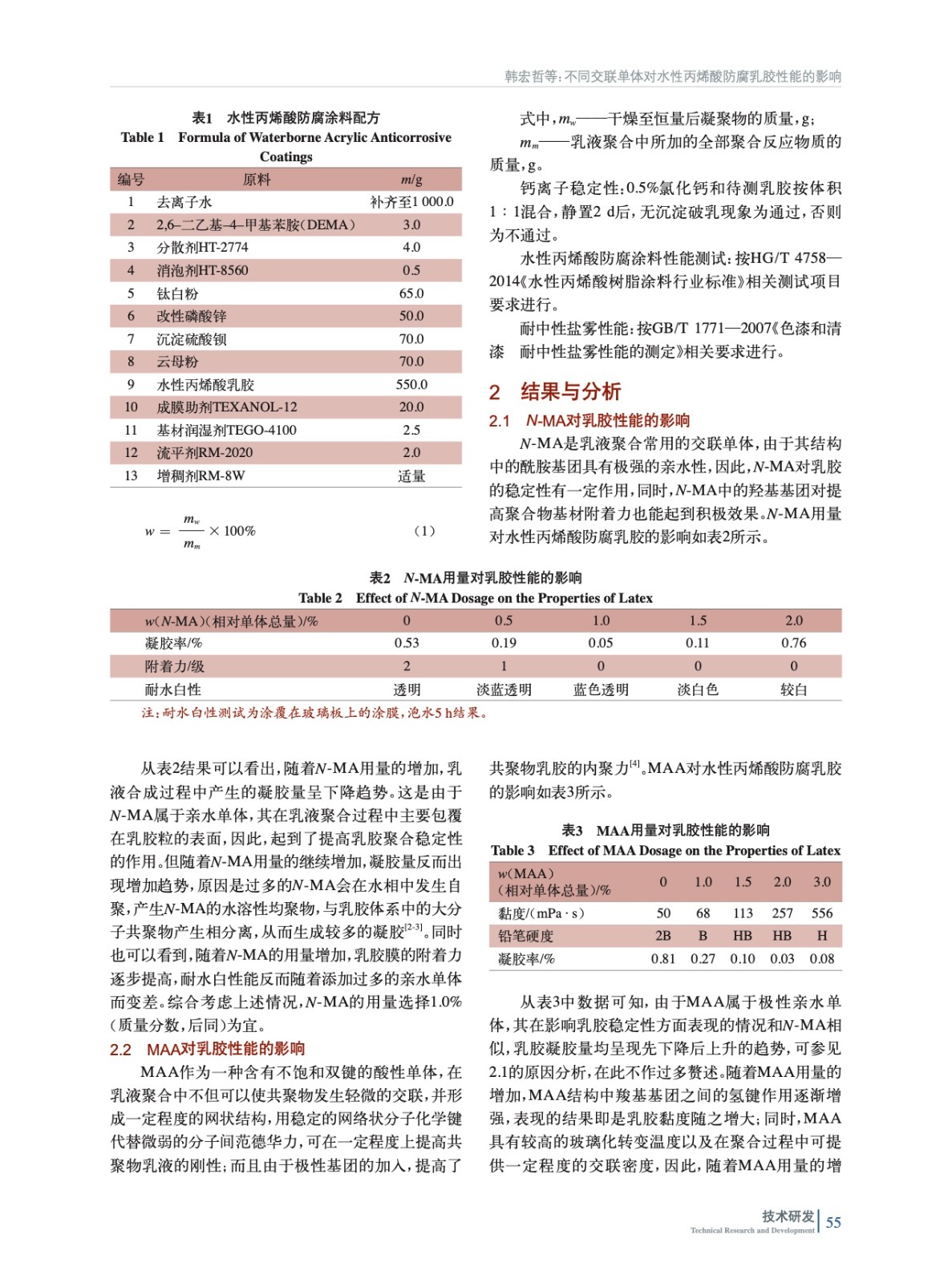不同交聯(lián)單體對(duì)水性丙烯酸防腐乳膠性能的影響