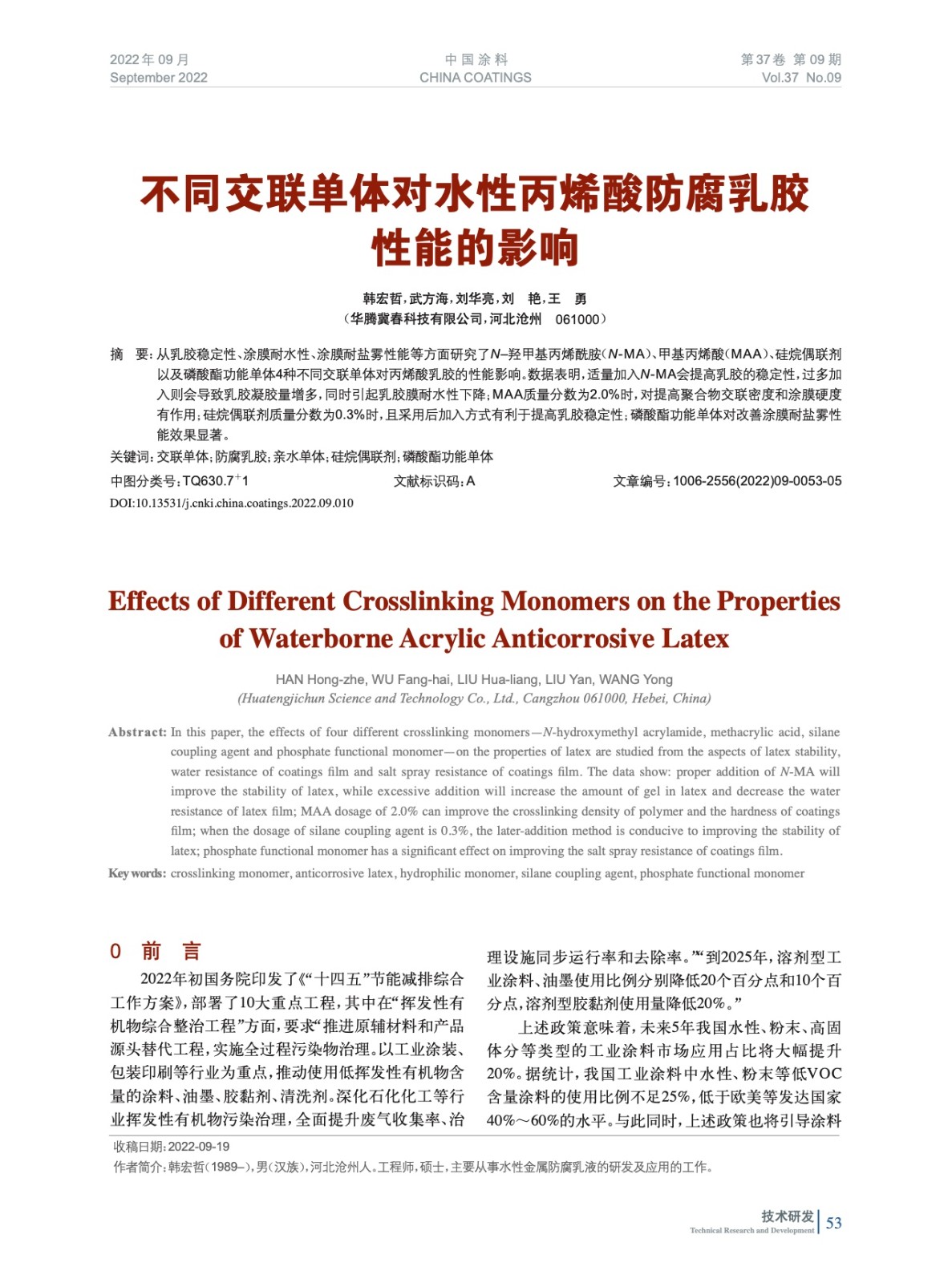 本文系作者@韓宏哲,武方海,劉華亮,劉 艷,王 勇 授權(quán)中國(guó)涂料網(wǎng)發(fā)表,并經(jīng)中國(guó)涂料網(wǎng)編輯,未經(jīng)允許不得轉(zhuǎn)載,如需轉(zhuǎn)載請(qǐng)聯(lián)系chinacoatingnet@vip.163.com