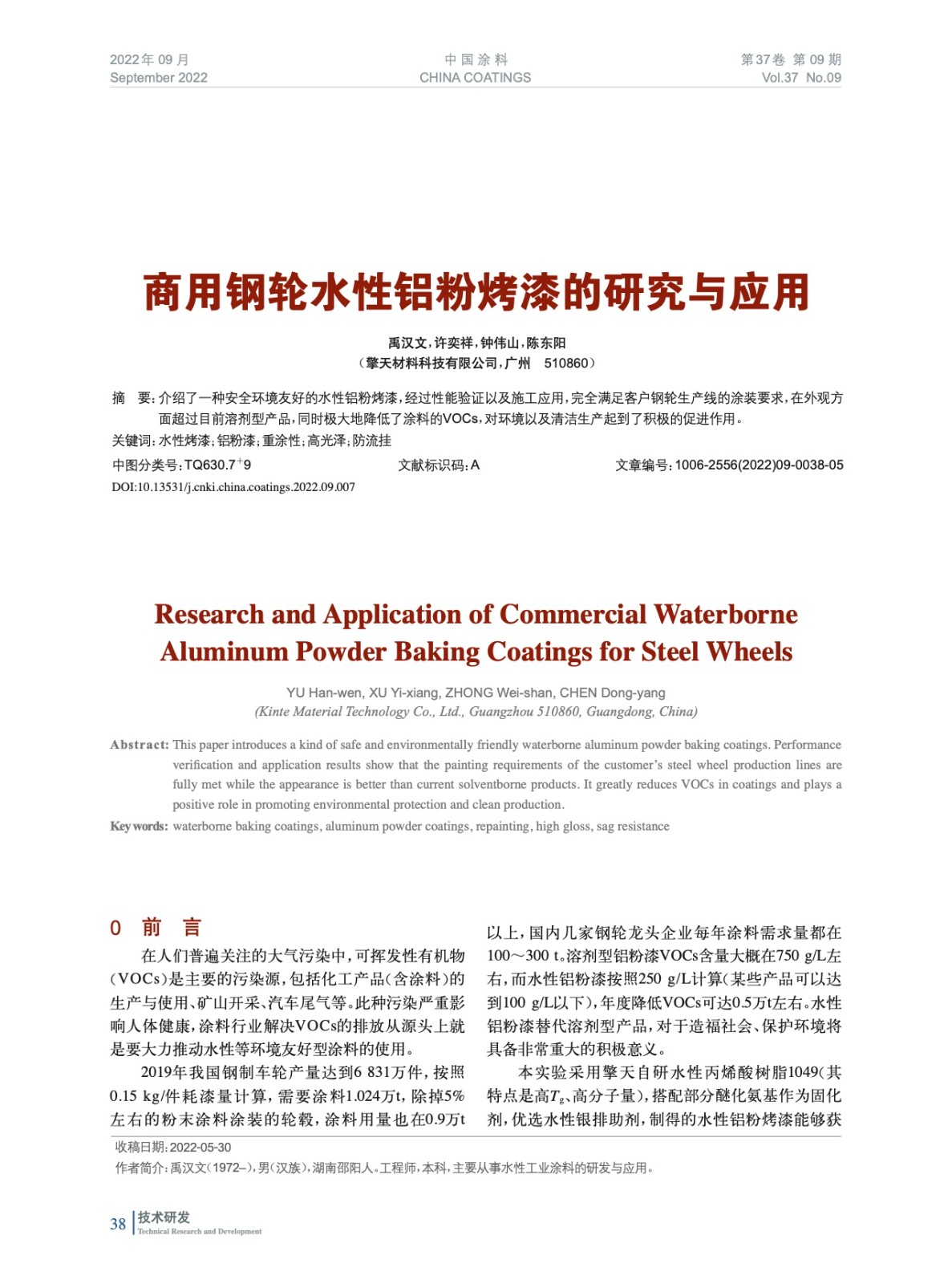 商用鋼輪水性鋁粉烤漆的研究與應用