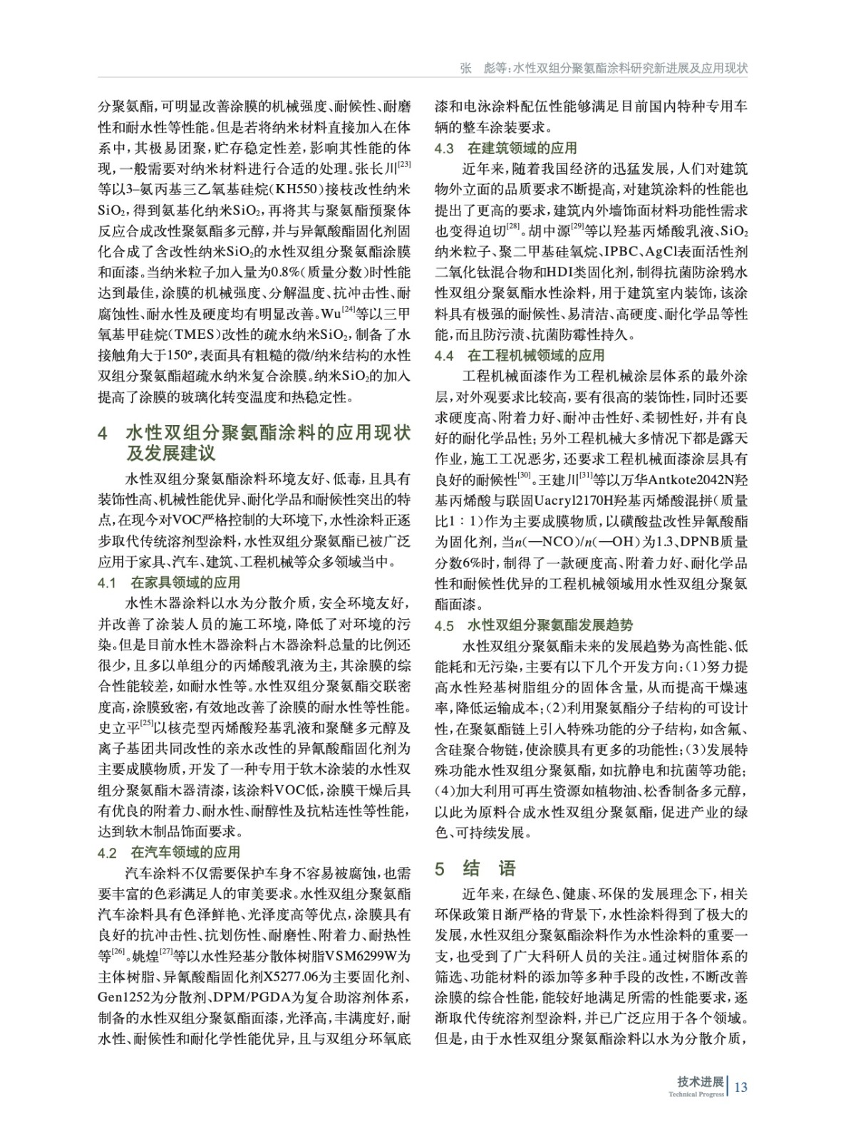 水性雙組分聚氨酯涂料研究新進展及應用現狀