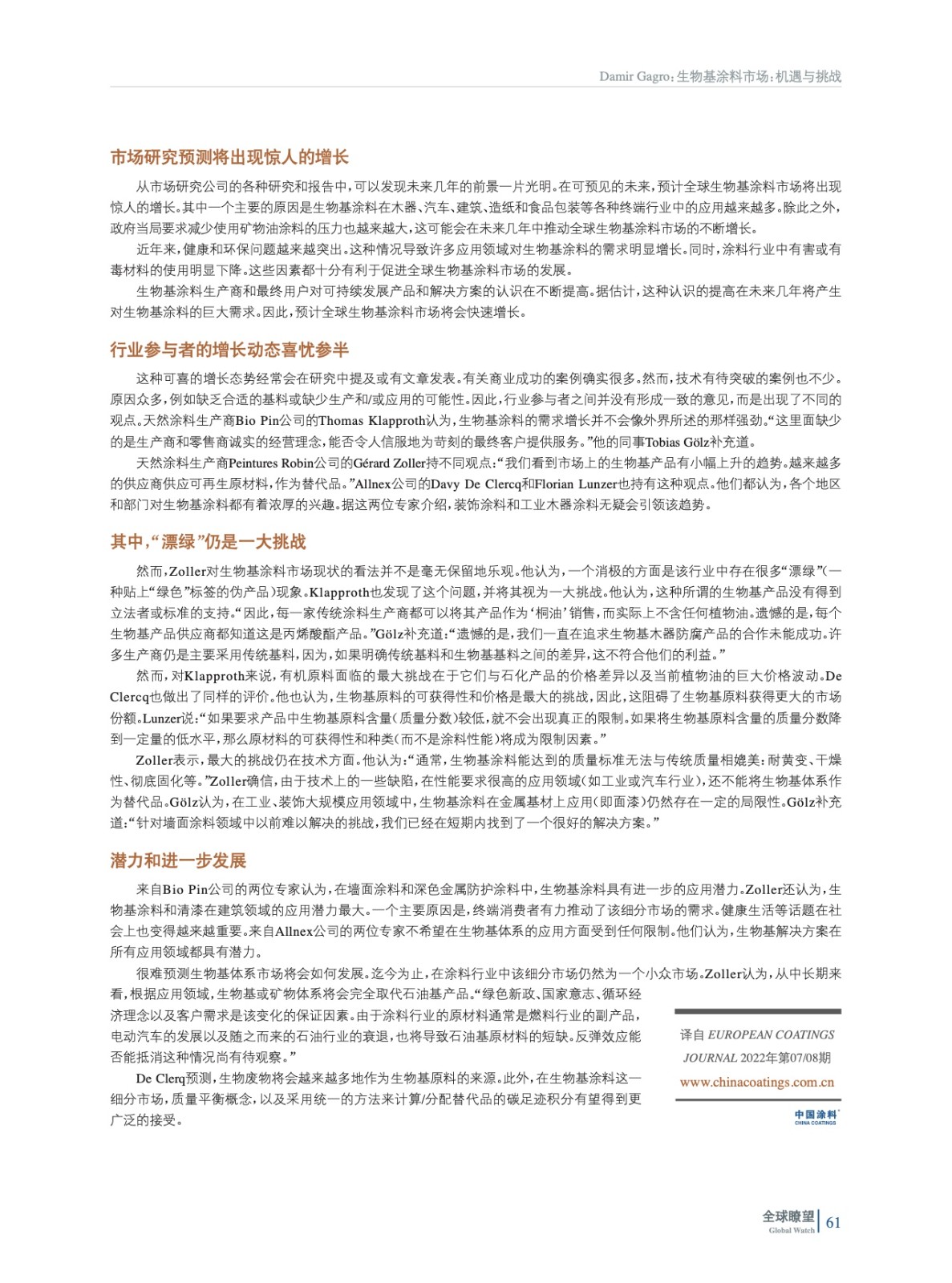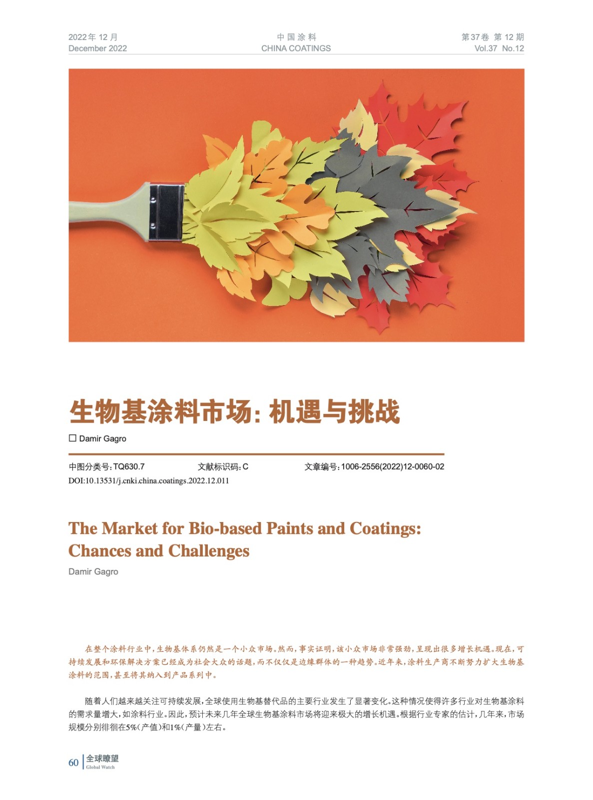 編者按:在整個涂料行業中,生物基體系仍然是一個小眾市場。然而,事實證明,該小眾市場非常強勁,呈現出很多增長機遇。現在,可持續發展和環保解決方案已經成為社會大眾的話題,而不僅僅是邊緣群體的一種趨勢。近年來,涂料生產商不斷努力擴大生物基涂料的范圍,甚至將其納入到產品系列中。