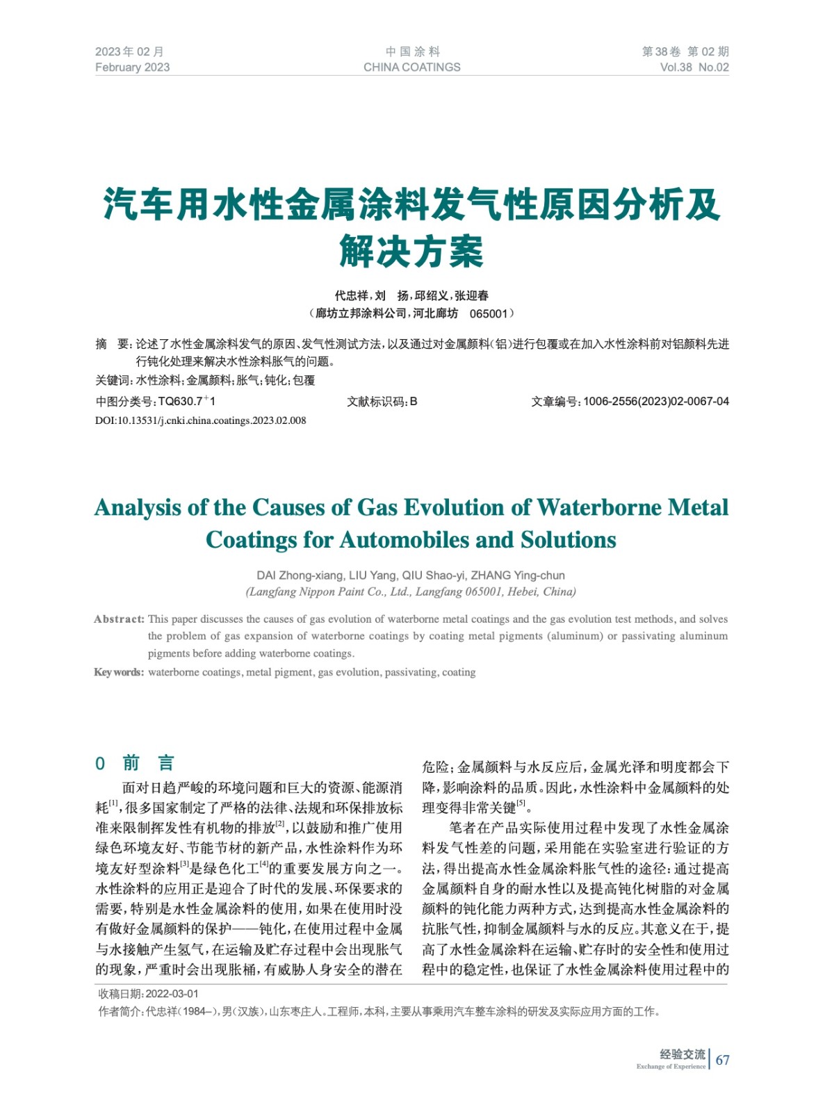 本文系作者@代忠祥,劉 揚,邱紹義,張迎春 授權中國涂料網發(fā)表,并經中國涂料網編輯,未經允許不得轉載,如需轉載請聯(lián)系chinacoatingnet@vip.163.com