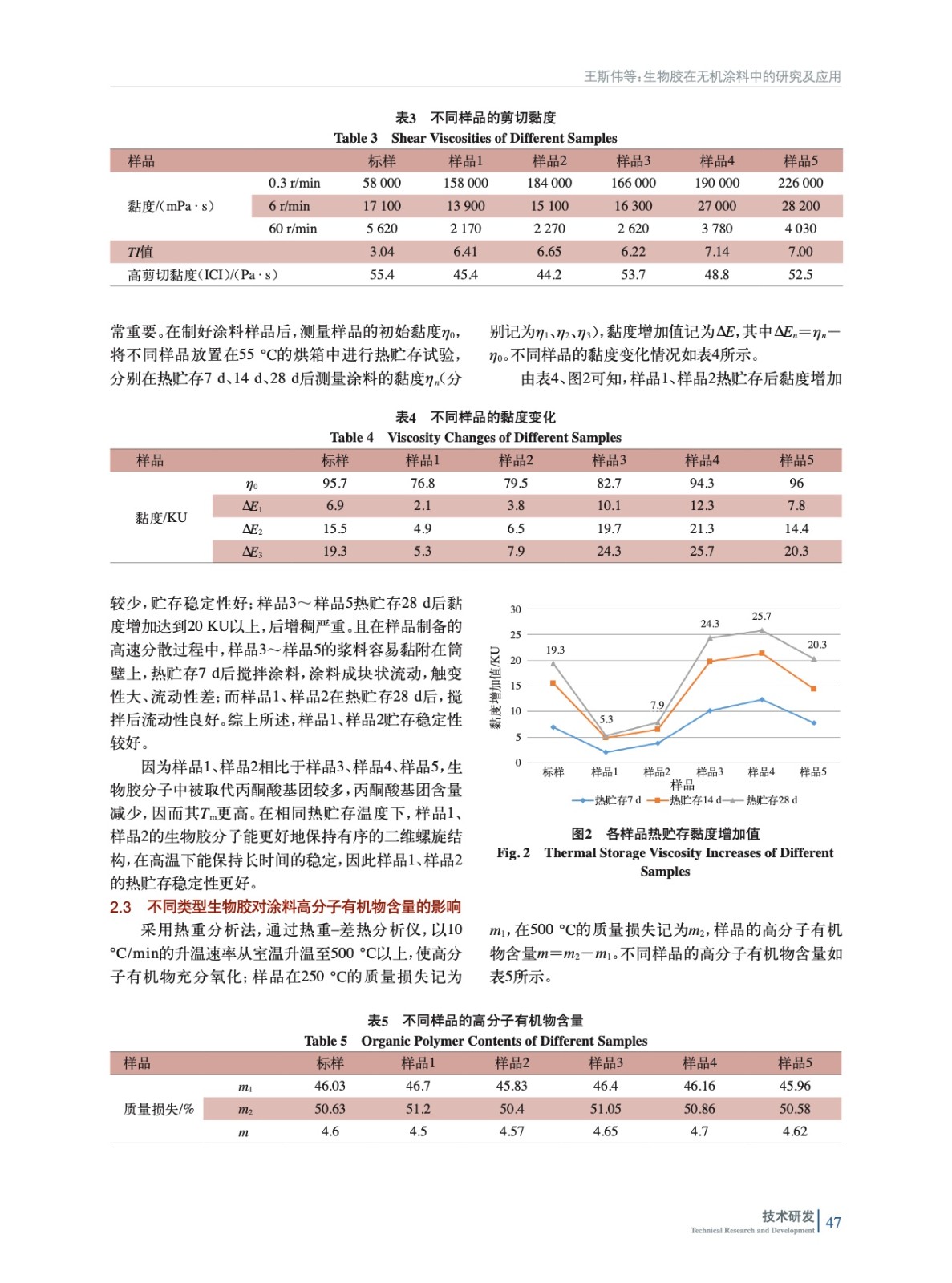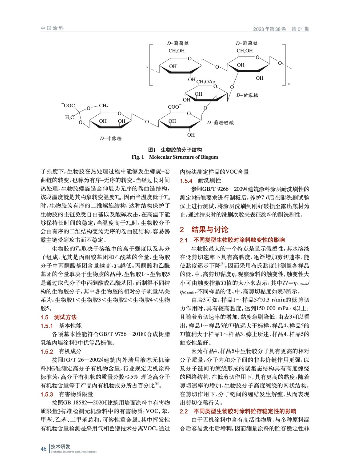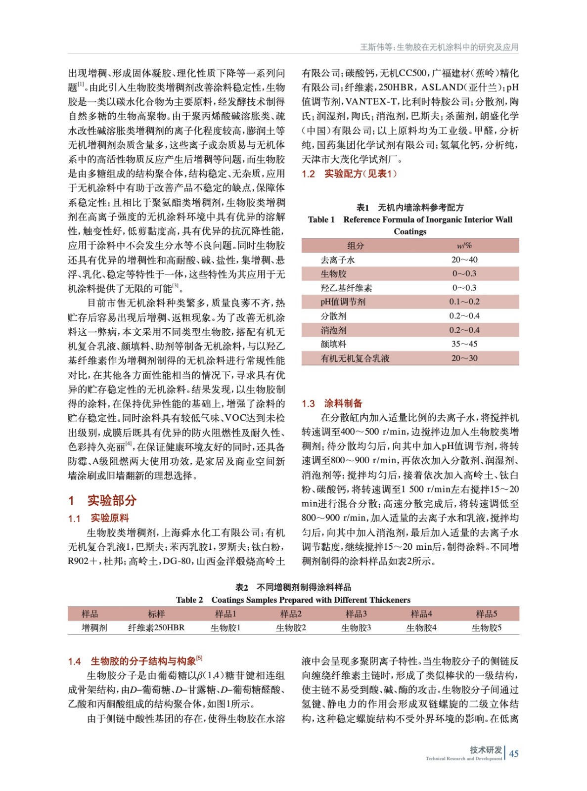 選取不同種類生物膠作為增稠劑,以有機無機復合乳液作為主要成膜物質,并添加顏填料、助劑等制得一種性能優異、貯存穩定性良好的無機涂料。探討了不同種類生物膠對涂料觸變性、熱貯存穩定性的影響,同時對涂料的施工性、耐洗刷性、低溫穩定性等各方面性能進行研究。