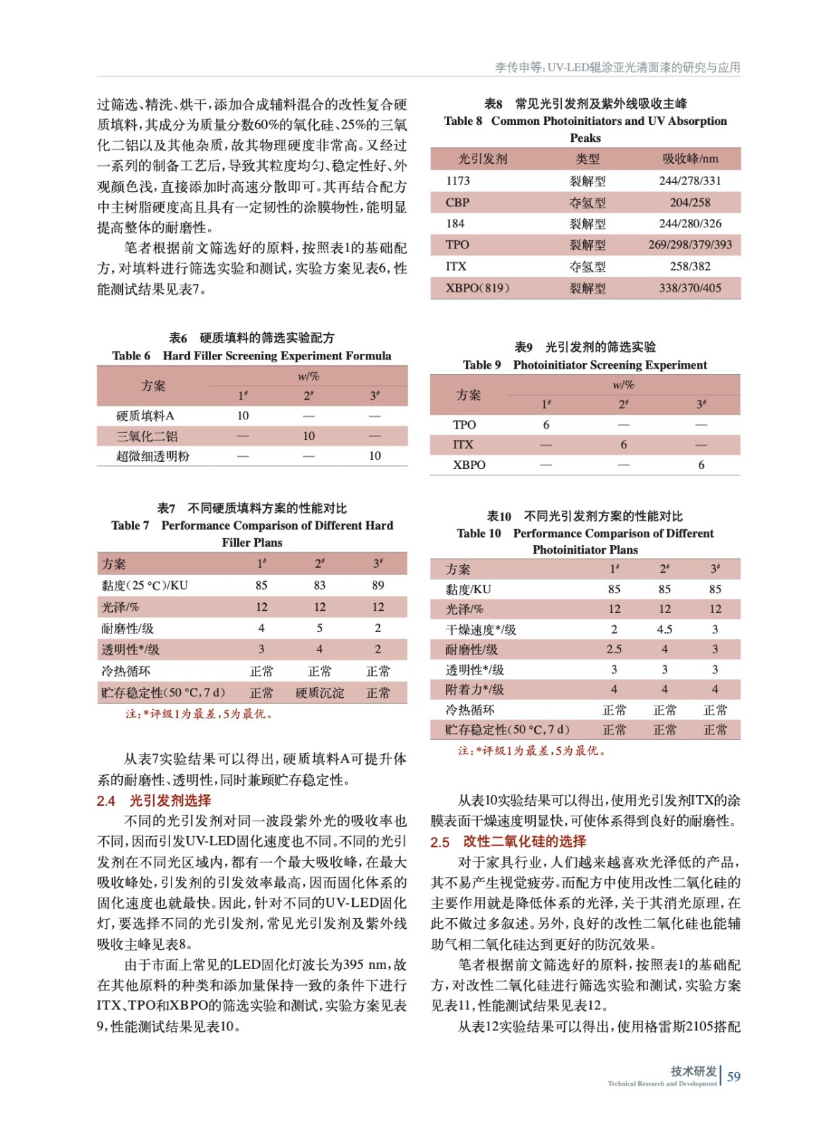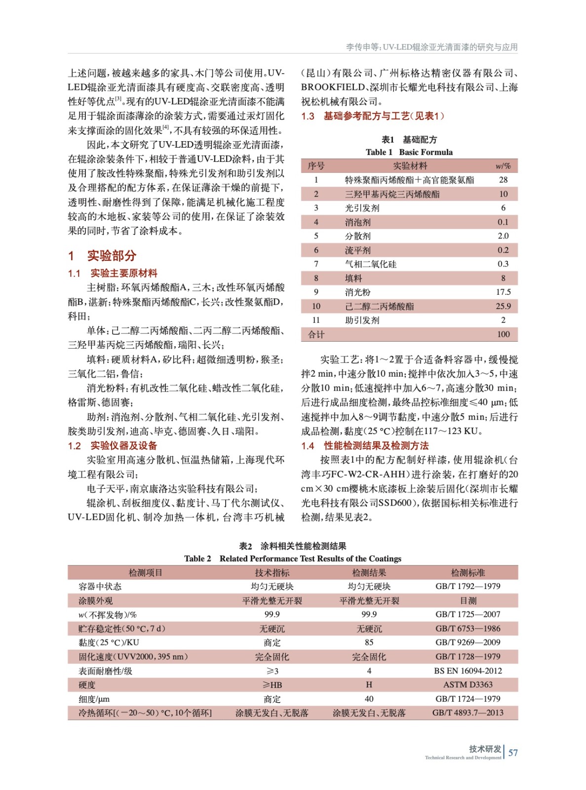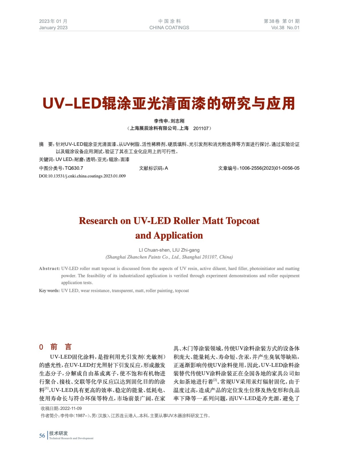 針對UV-LED輥涂亞光清面漆,從UV樹脂、活性稀釋劑、硬質填料、光引發劑和消光粉選擇等方面進行探討,通過實驗論證以及輥涂設備應用測試,驗證了其在工業化應用上的可行性。