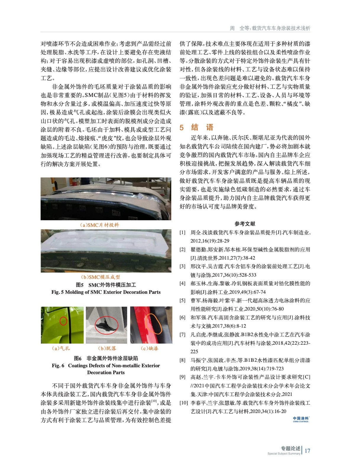 摘要:結(jié)合國(guó)內(nèi)載貨汽車(chē)車(chē)身涂裝現(xiàn)狀與發(fā)展趨勢(shì),分別從環(huán)保型涂裝前處理、超高泳透力陰極電泳涂料、環(huán)境友好型面漆以及非金屬外飾件涂裝等方面簡(jiǎn)要進(jìn)行了闡述與分析,并針對(duì)載貨汽車(chē)車(chē)身涂裝品質(zhì)提升給出了若干技術(shù)路徑與改善建議。