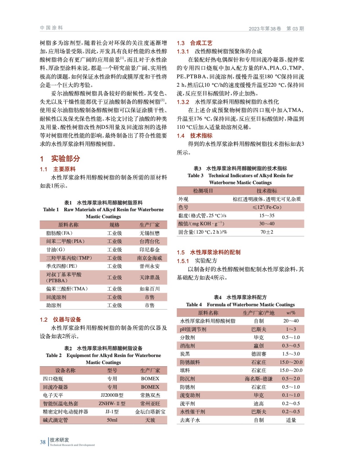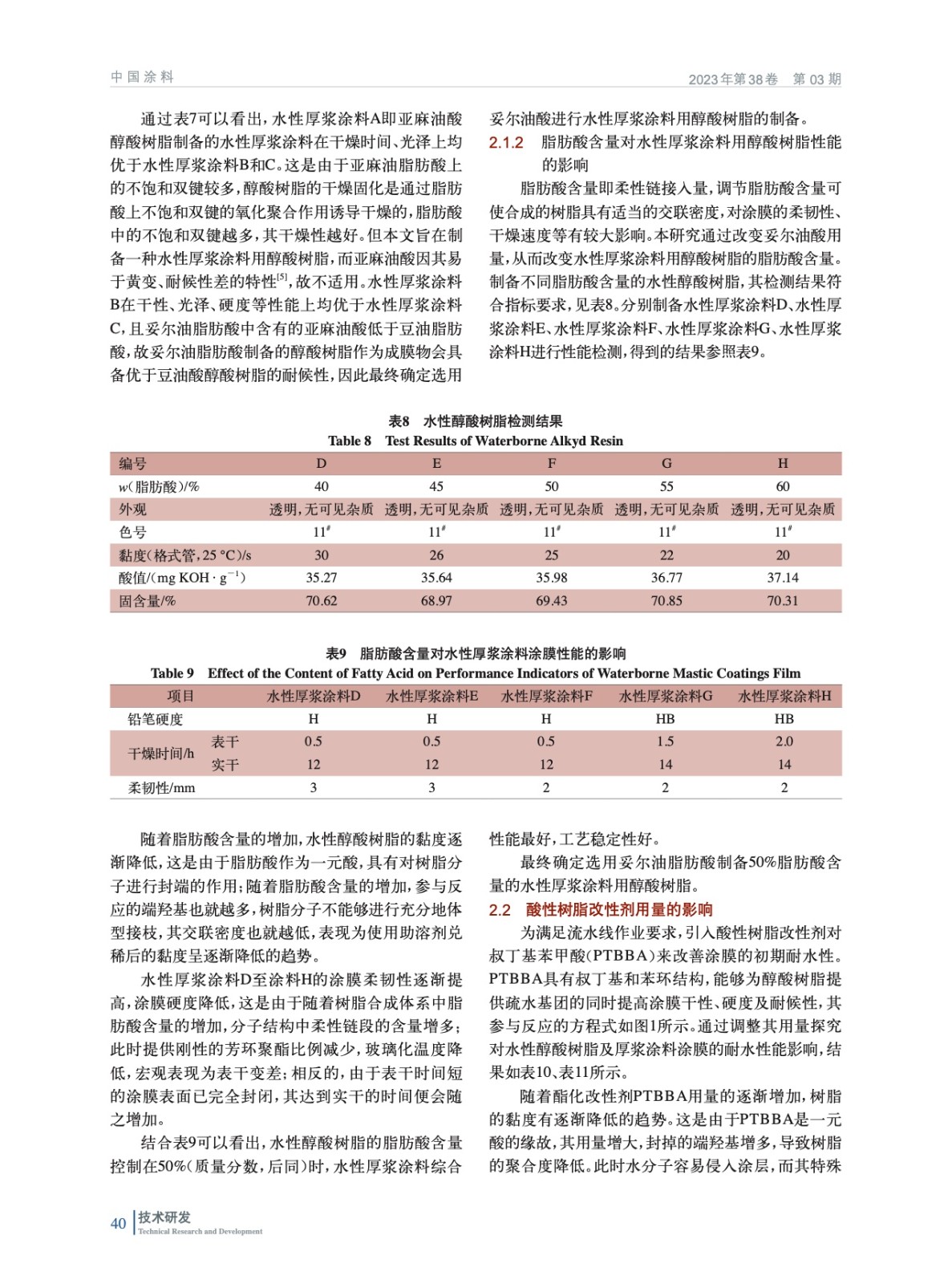 使用妥爾油脂肪酸制備合成水性厚漿涂料用醇酸樹脂,通過探究脂肪酸的種類及含量、酸性樹脂改性劑對叔丁基苯甲酸的用量及回流溶劑的選擇對水性醇酸樹脂的制備過程及產品性能指標的影響得出水性厚漿涂料用醇酸樹脂優化配方。
