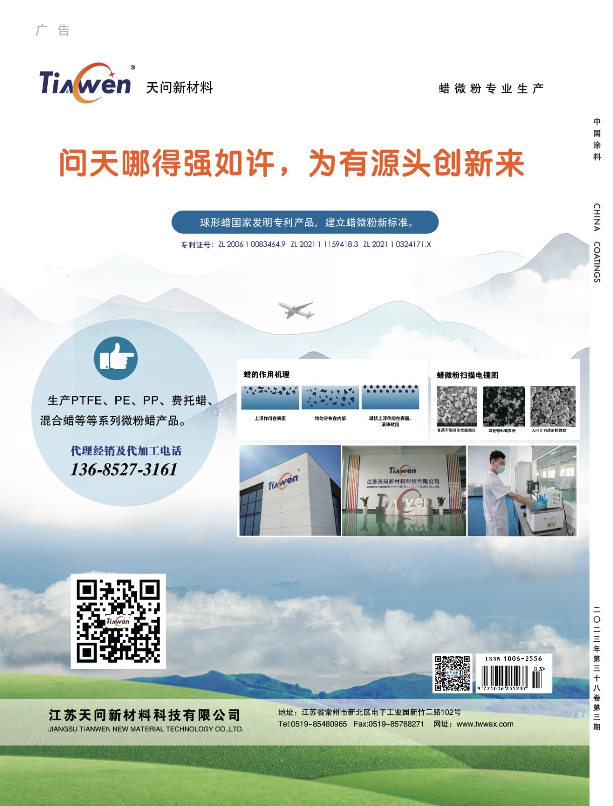 封1:朗盛特殊化學品有限公司;封2:江蘇布威倫環保科技有限公司;封3:北京涂博國際展覽有限公司;封4:江蘇天問新材料科技有限公司