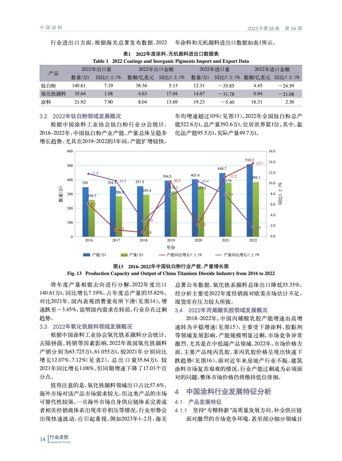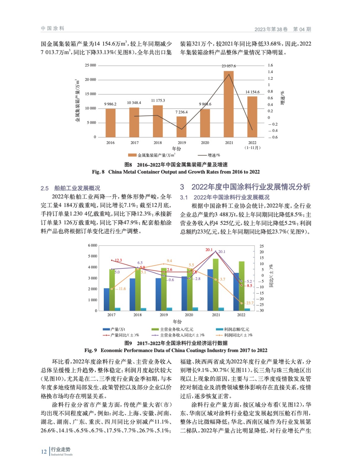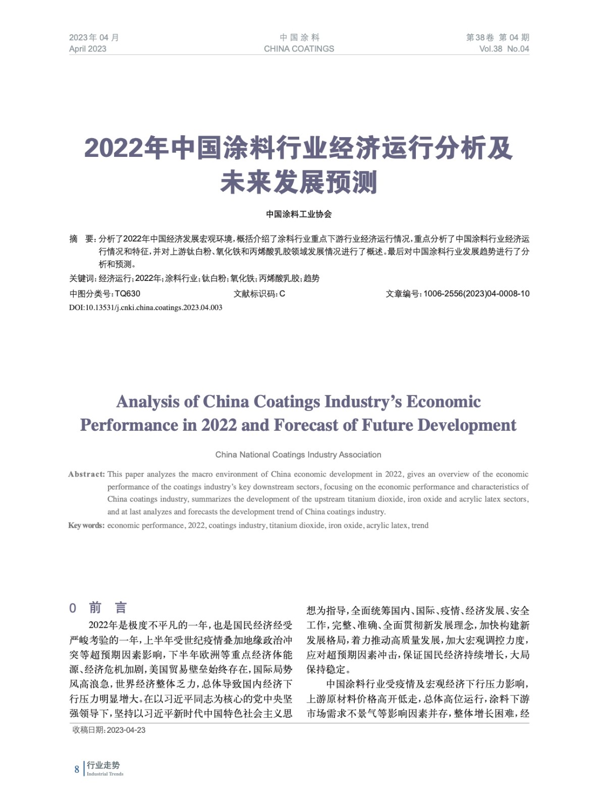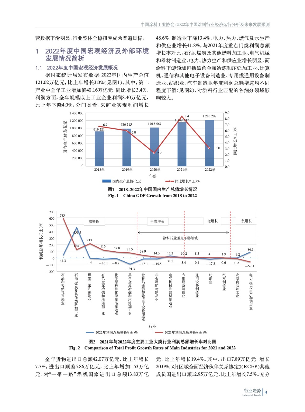 分析了2022年中國經濟發展宏觀環境,概括介紹了涂料行業重點下游行業經濟運行情況,重點分析了中國涂料行業經濟運行情況和特征,并對上游鈦白粉、氧化鐵和丙烯酸乳膠領域發展情況進行了概述。最后對中國涂料行業發展趨勢進行了分析和預測。