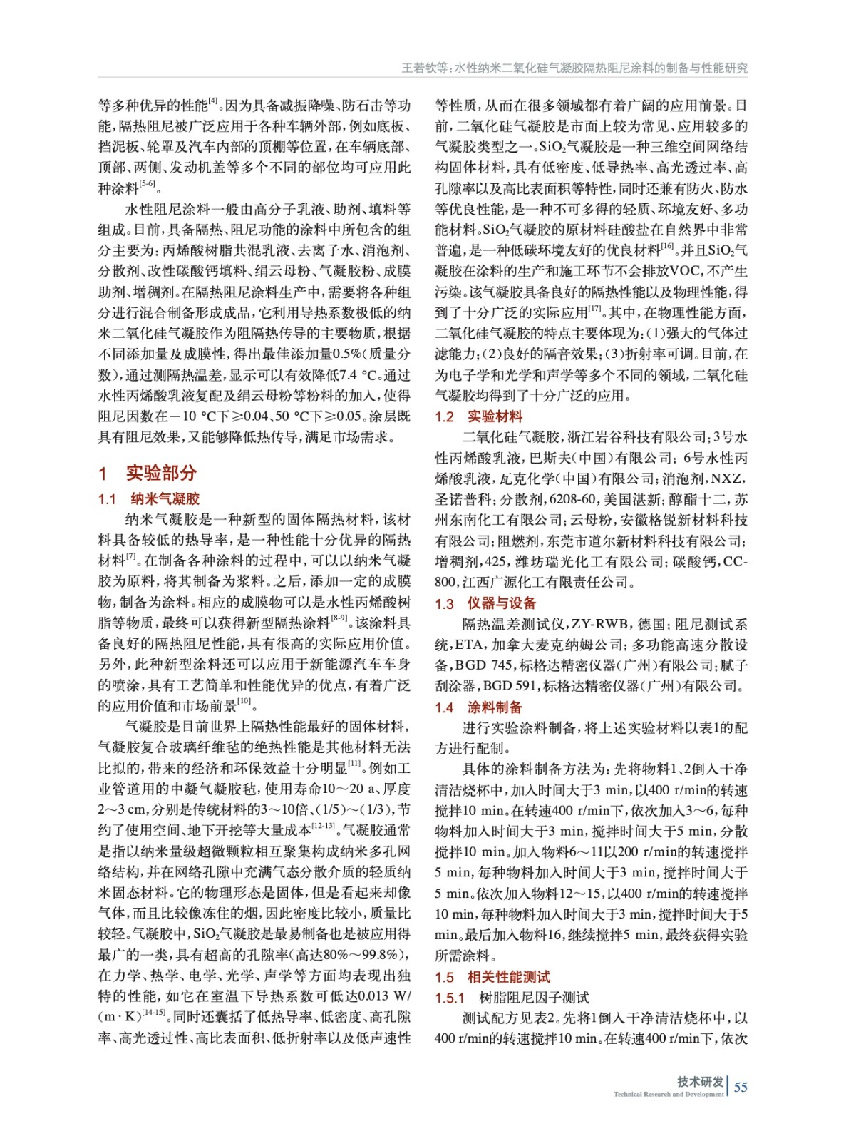 二氧化硅氣凝膠是一種優異的隔熱材料,此次研究中以水性丙烯酸樹脂為成膜物,添加一定的助劑,制備出具備隔熱阻尼功能的涂料。通過對其性能進行研究發現,所制備的實驗涂料具有良好的多方面性能。
