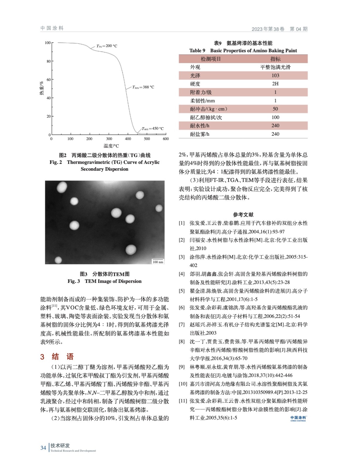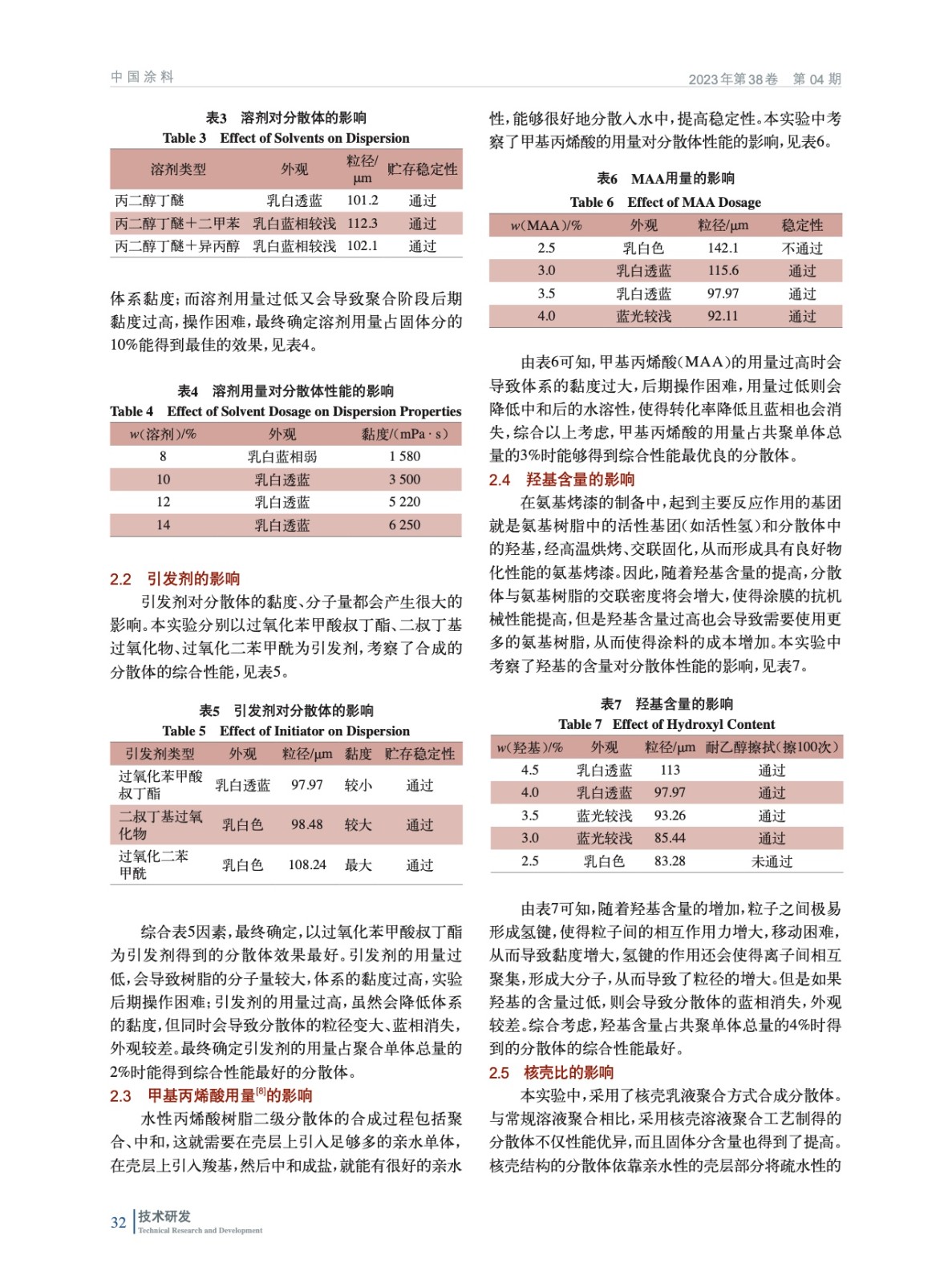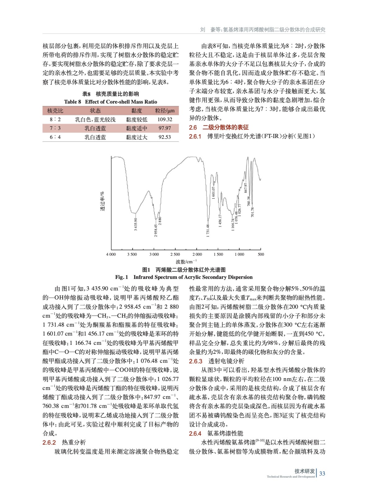 氨基烤漆用丙烯酸樹脂二級分散體的合成研究