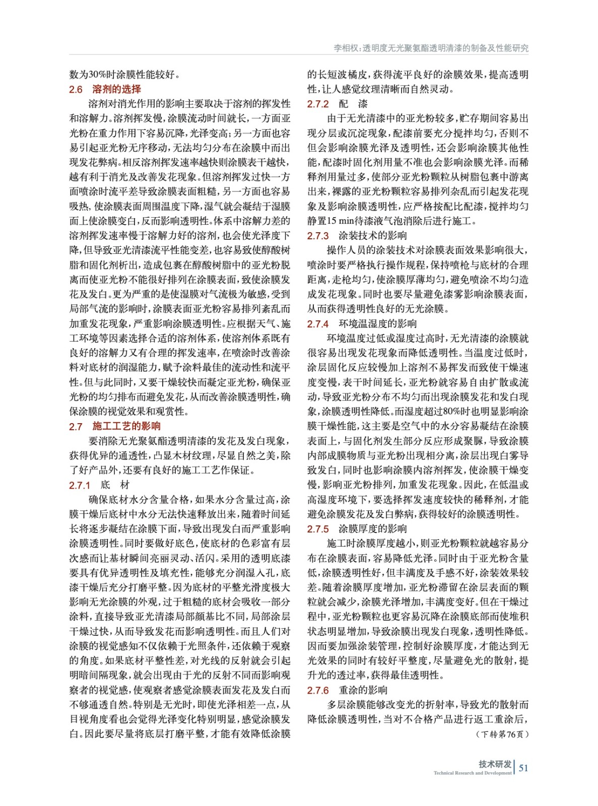 通過實驗選擇合適的原材料制備高透明度的無光聚氨酯透明清漆,能夠賦予實木家具“薄、透、閃、活”的涂裝效果,分析討論了影響無光涂膜透明性的因素,并提出相應的解決方法。