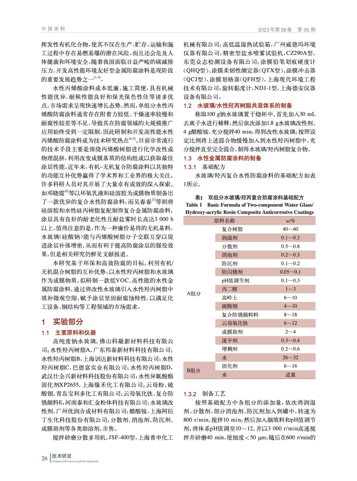 水玻璃/羥丙水性復合金屬防腐涂料的研制與性能研究