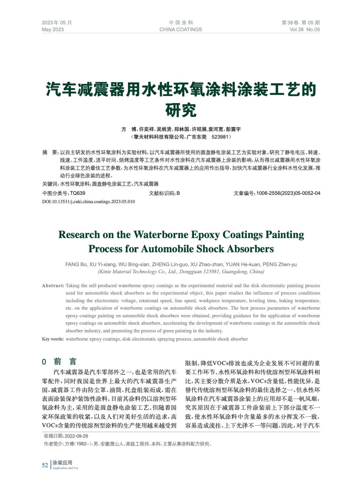 汽車減震器用水性環(huán)氧涂料涂裝工藝的研究