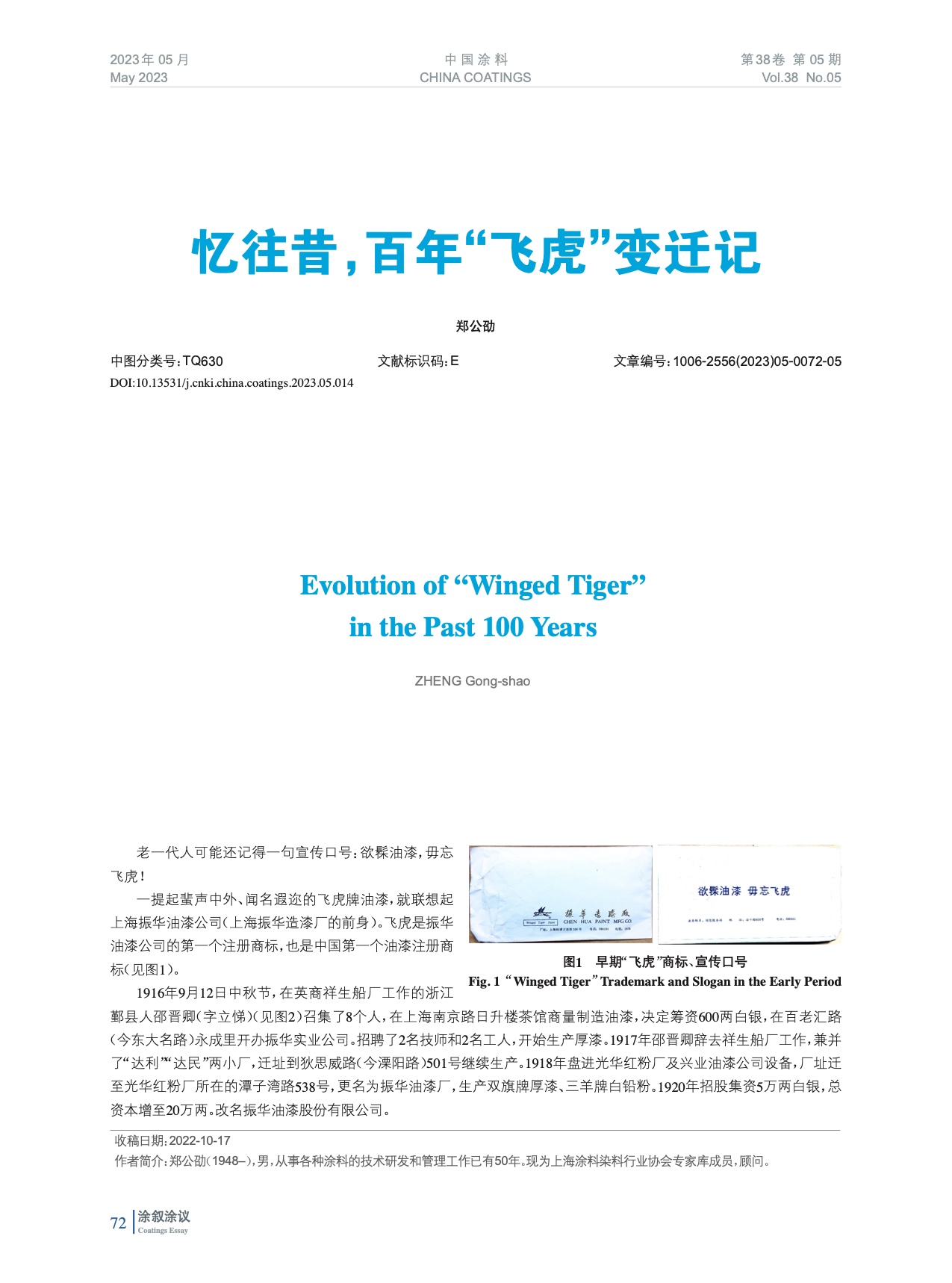 老一代人可能還記得一句宣傳口號:欲髹油漆,毋忘飛虎!一提起蜚聲中外、聞名遐邇的飛虎牌油漆,就聯想起上海振華油漆公司(上海振華造漆廠的前身)。飛虎是振華油漆公司的第一個注冊商標,也是中國第一個油漆注冊商標。