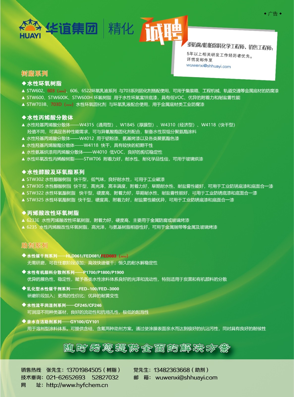 封1:江蘇布威倫環保科技有限公司;封2:上海華誼精細化工有限公司技術中心;封3:江蘇天問新材料科技有限公司;封4:廣東恒和永盛集團有限公司