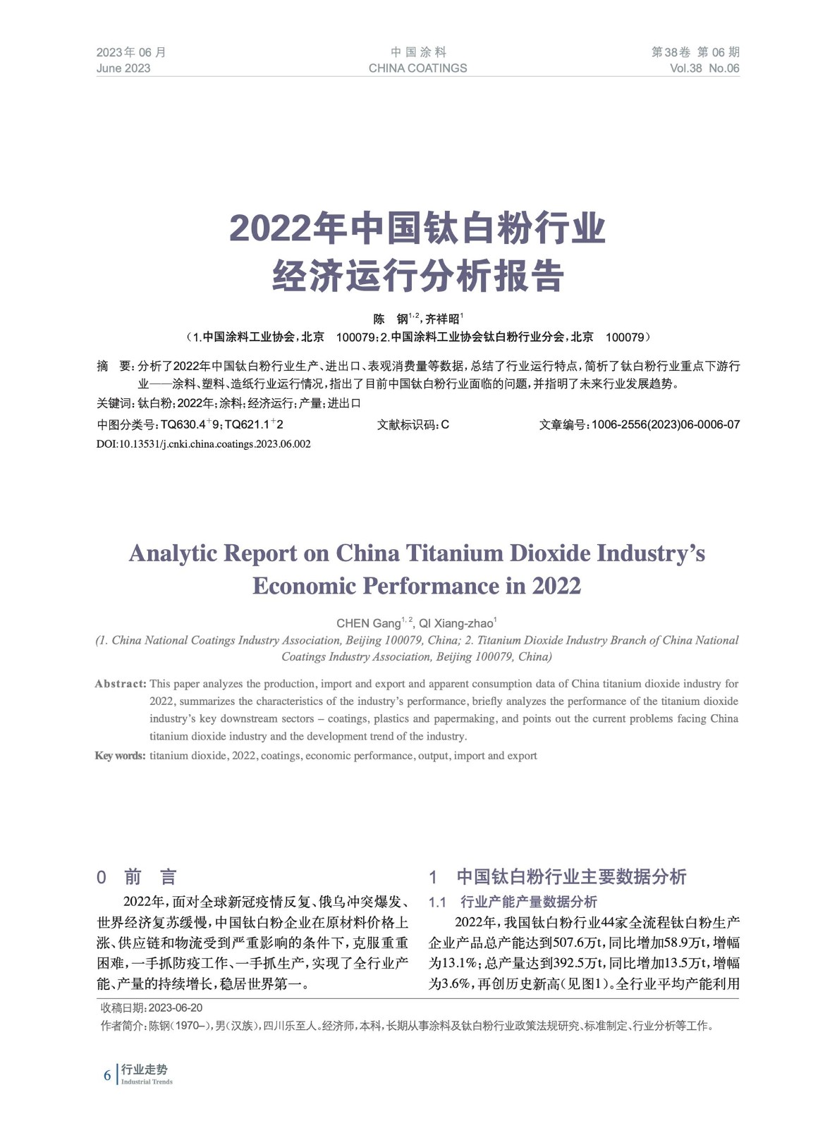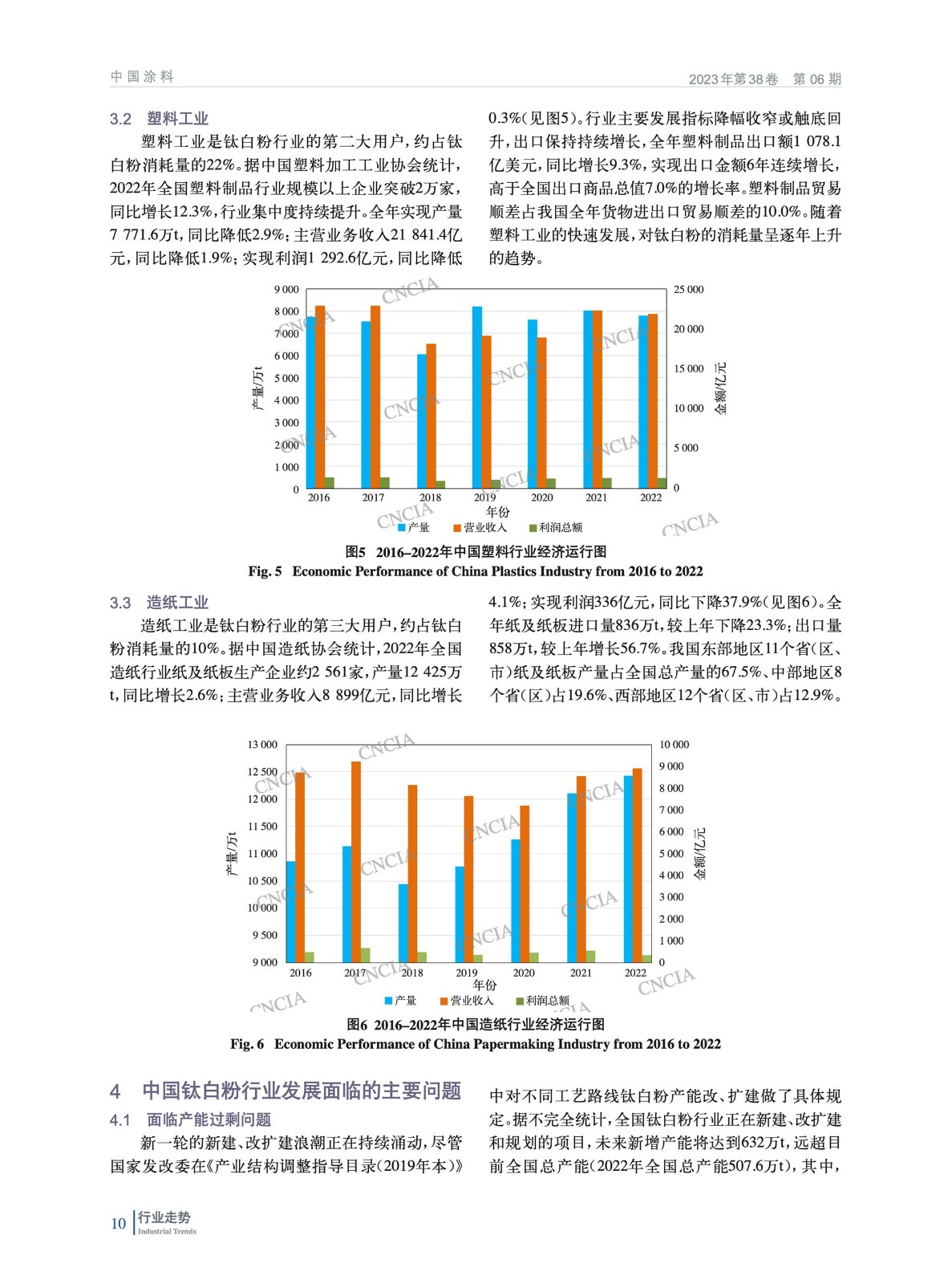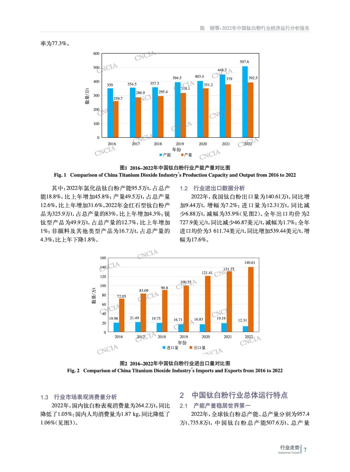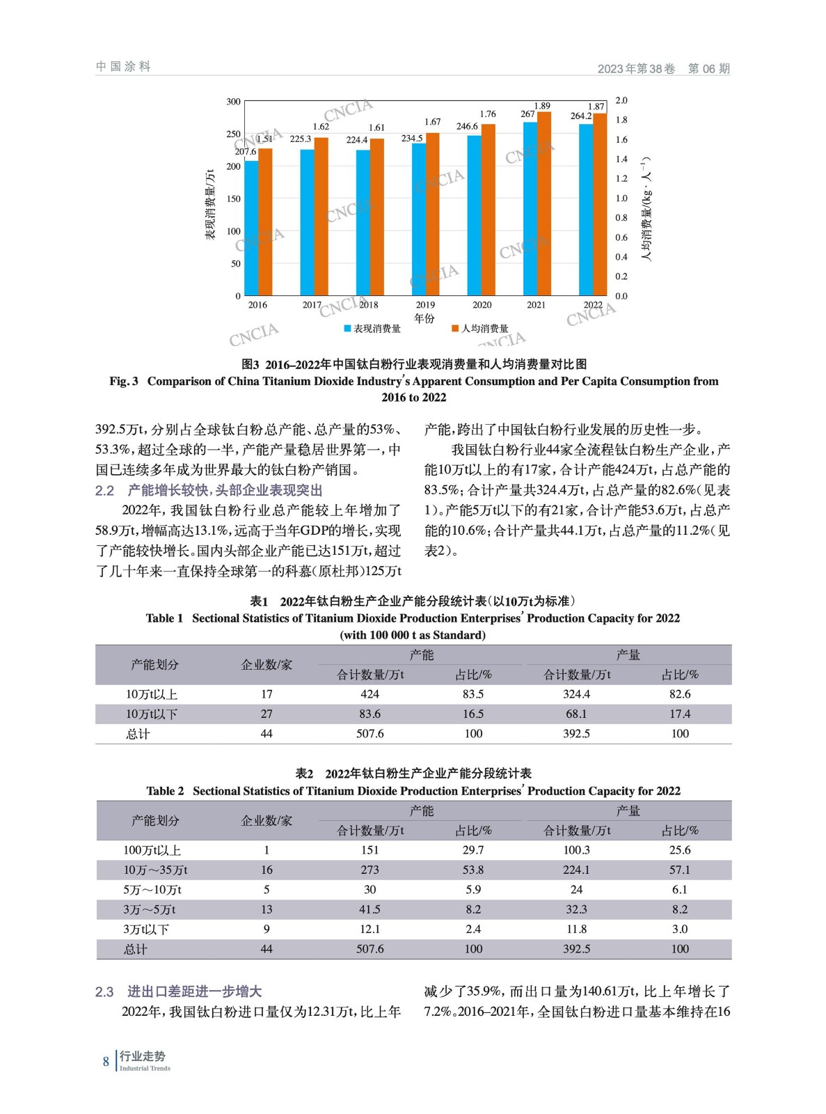 分析了2022年中國鈦白粉行業生產、進出口、表觀消費量等數據,總結了行業運行特點,簡析了鈦白粉行業重點下游行業——涂料、塑料、造紙行業運行情況,指出了目前中國鈦白粉行業面臨的問題,并指明了未來行業發展趨勢。