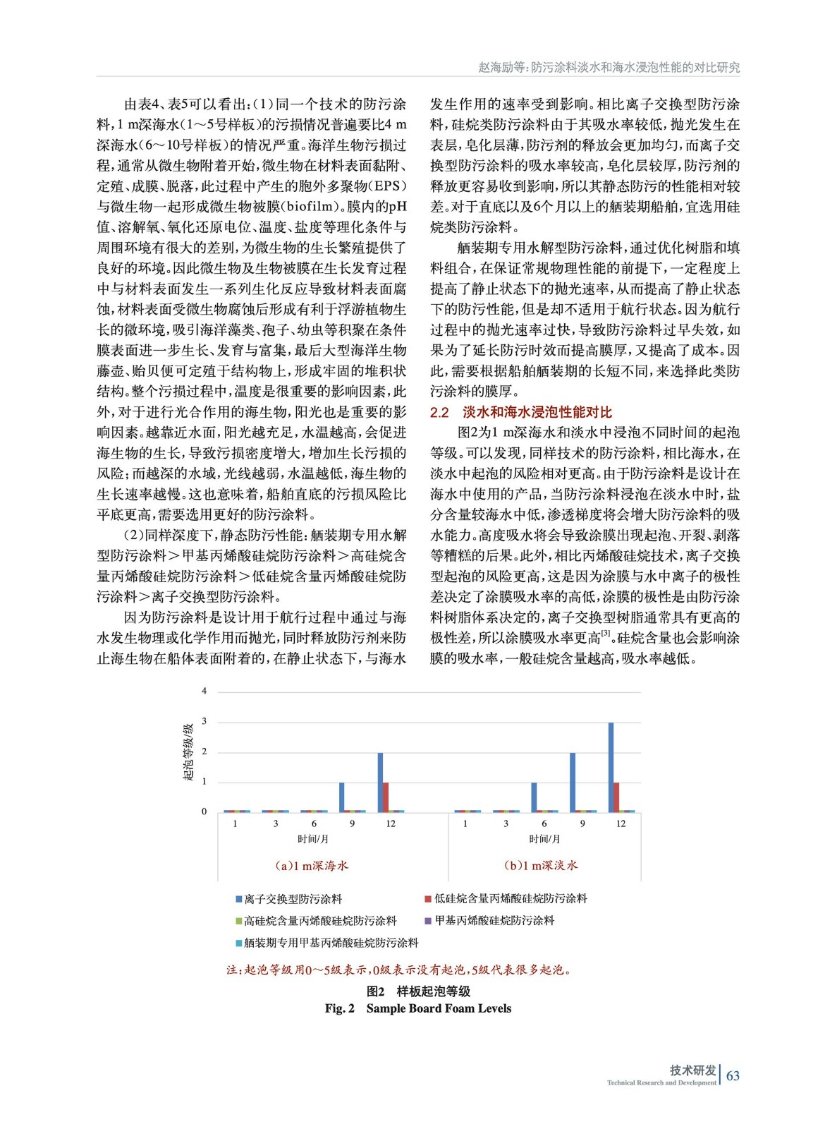 防污涂料淡水和海水浸泡性能的對(duì)比研究