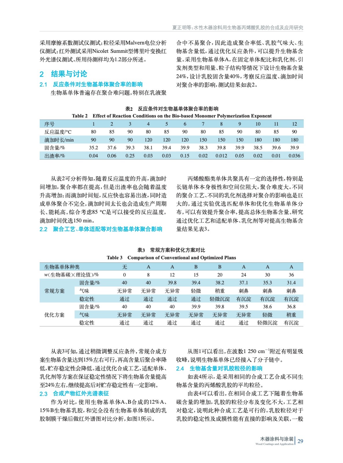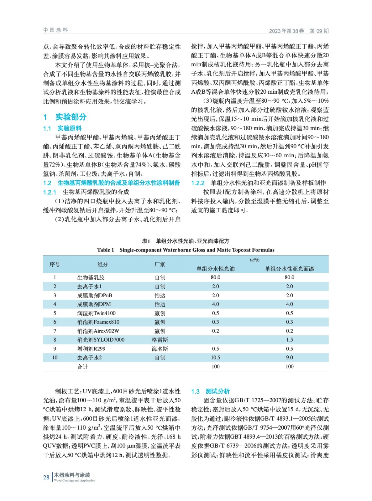 水性木器涂料用生物基丙烯酸乳膠的合成及應用研究