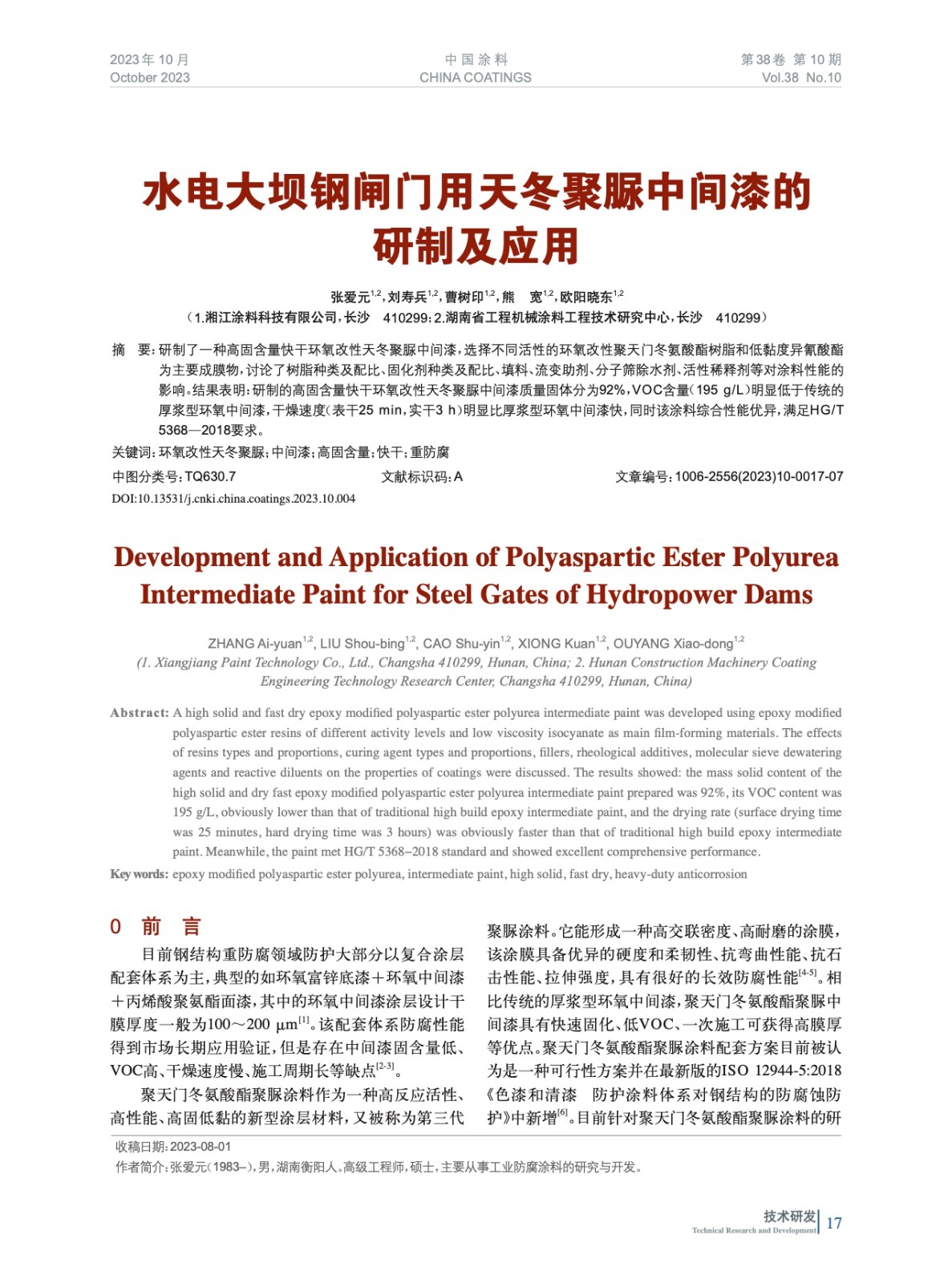 本文系作者@張愛元,劉壽兵,曹樹印,熊 寬,歐陽曉東 授權(quán)中國涂料網(wǎng)發(fā)表,并經(jīng)中國涂料網(wǎng)編輯,未經(jīng)允許不得轉(zhuǎn)載,如需轉(zhuǎn)載請(qǐng)聯(lián)系chinacoatingnet@vip.163.com